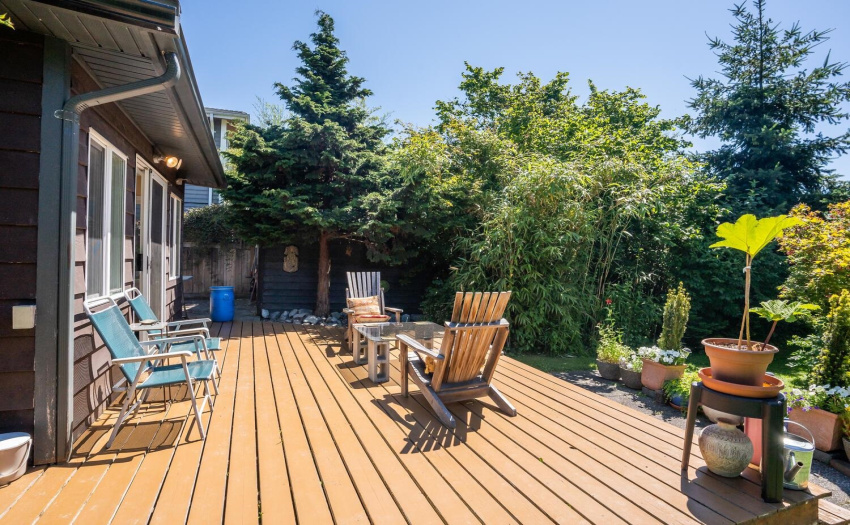 Fabulous sun soaked south rear lot on a quiet & desirable street in the popular Port Guichon area! This is a cool street with a nice mix of new builds & original vintage homes. It’s an easy walk to downtown Ladner, transit, schools & the scenic riverside dyke! This comfy home feels bigger than it shows & transitions seamlessly from inside to outside. Features include hardwood floors, crawl space, newer roof & more. It is very private with tasteful, mature landscaping including some fabulous species! The 9182 sf lot & RS1 zoning allows for a new build of over 3750 sf plus garage – more details available on request! This is a special offering so call your agent now & book your private viewing!