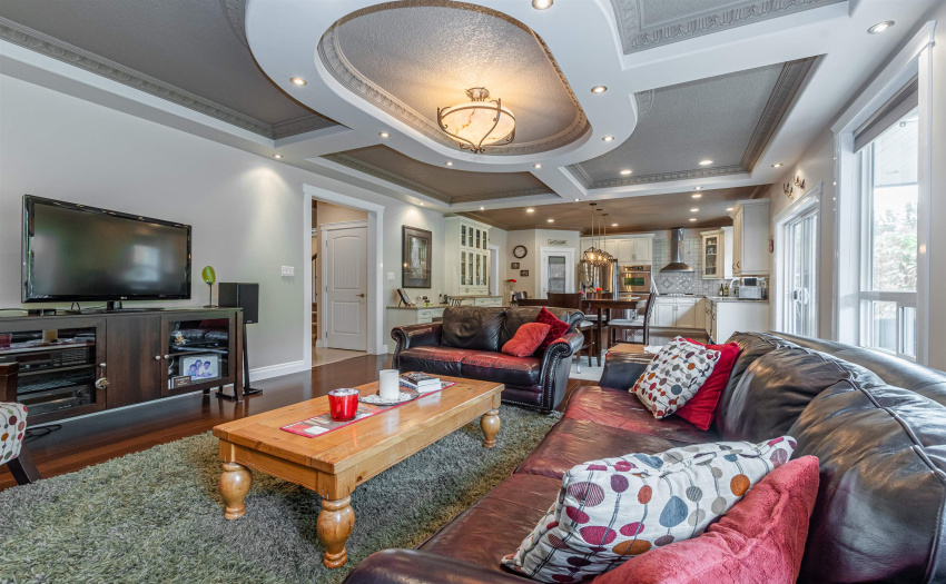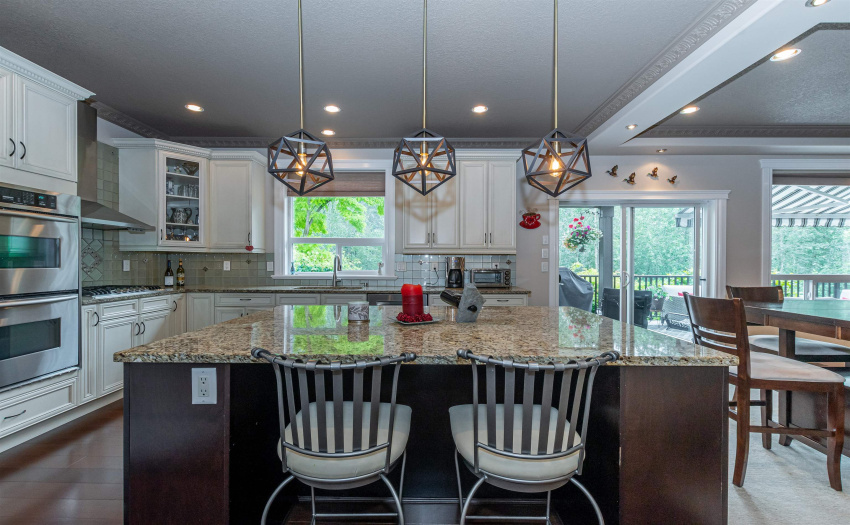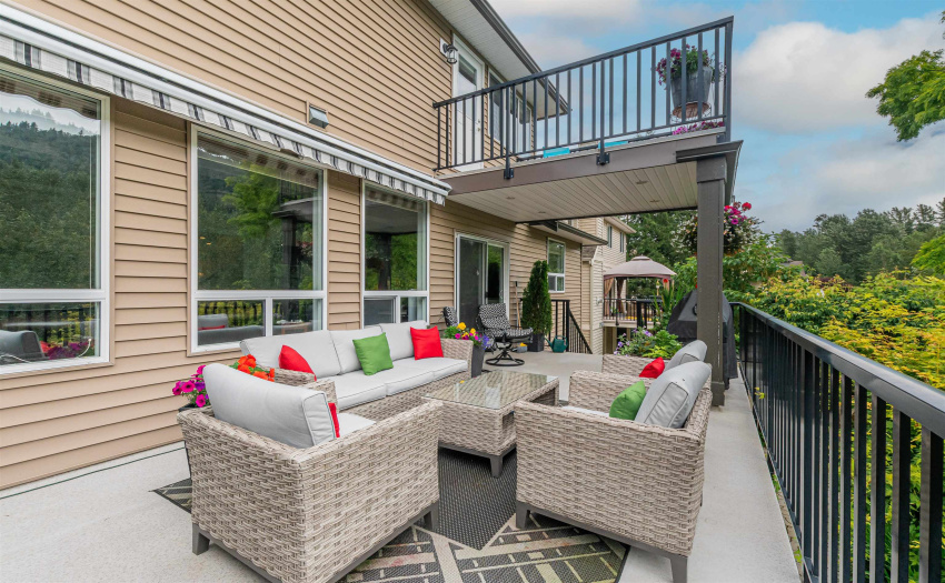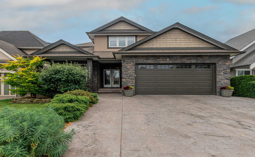 Spectacular, custom built, 4,400 sq/ft executive home in Webster Landing, overlooking the Vedder River and Rotary Trail. Extreme attention to fine detail in this home: main floor boasts a marble foyer with intricate crown mouldings from Utah and opens on to a spacious great room with stone fireplace, mahogany floors, bright kitchen with an abundance of cupboards, counter space, and complete with an over-sized island and eating bar, as well as separate dining and sitting rooms. Upstairs has 4 large bedrooms including a master suite with a gorgeous ensuite and its own private deck. The bright walk out basement could easily be converted to a 2 bedroom suite. The professionally landscaped backyard is a gardener’s paradise, providing indoor/outdoor living options. RV Parking is available.