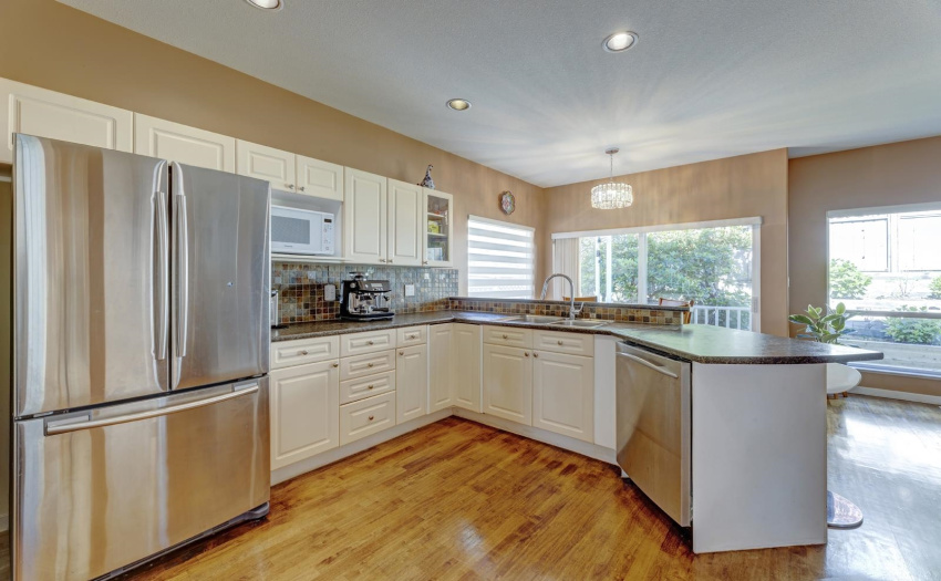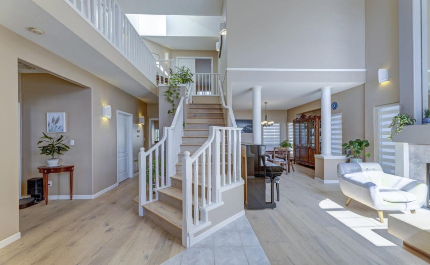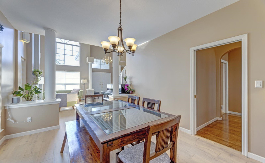 Gorgeous family home on prestigeous Westwood Plateau with valley view. Luxury design with high ceiling in the living room, curved stairs and bonus 1 bedroom/den with full bath on the main. Newly updated engineered hardwood flooring and high-end blinds. Butler’s bar connects the formal dining room and kitchen which feautures S/S appliances, lots of cabinets and Wok kitchen area. Walking to the well-maintained private backyard from the family room. Three bdrms upstairs all come with good size. Master bdrm has a huge WIC and 5pcs spa-inspired ensuit. Downstairs you will have a media room, three extra bdrms and a full bath to accommodate guests or extended families. Double garage w/2 more parkings on driveway. Bareland strata $69.43/month covers garbage collection, snow removal and gardening.