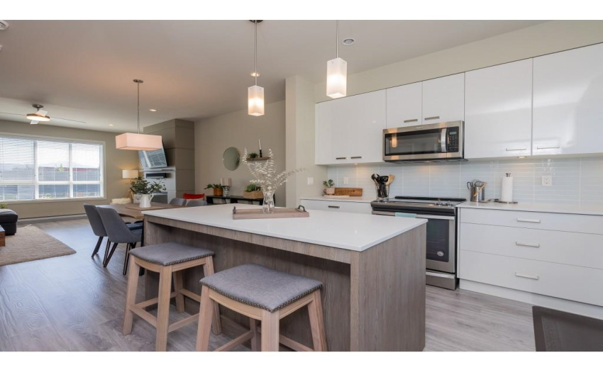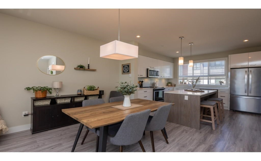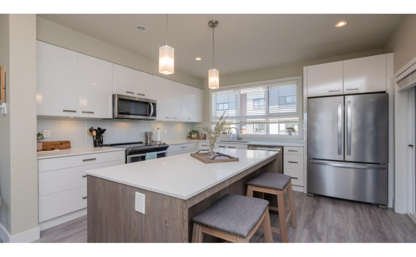 Beautiful 3 bed + den/2.5 bath twnhm in the sought after Parallel South development in East Abby. Enjoy a modern open concept Kitchen with engineered stone countertops, SS appliances, soft close cabinets & lrg island perfect for entertaining. Spacious living/dining room with an array of windows providing natural light throughout. Master bdrm comes with vaulted ceilings, walk-in closet, gorgeous ensuite bathroom, stunning views of Mt.Baker, and BRAND NEW built in heat pump/AC providing cool air throughout the whole top floor. 2 additional bdrms upstairs & a BONUS room on the ground floor perfect for an office or play room. 4 parking spots! Lrg double garage + additional 2 parking spots in the driveway. Family friendly, pet friendly & rentals allowed. You don’t want to miss out on this unit!