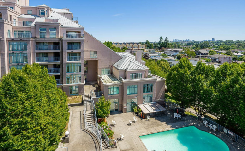 SOUTHEAST CORNER UNIT! Gardenia Villa – 2 bdrms suite located on East Broadway & Nanaimo Street in neighbourhood Renfrew Heights, where is truly a convenient location that is close to retail shops & service, transit, Trout Lake community centre, superstore. Just one block away from Renfrew Station. Kitchen with nook & balcony. Spacious living & dinning rm. In-suite laundry. 1 parking stall and 1 storage locker included. Gym & outdoor pool for your enjoyment. Rental allowed. Good for investment and living.