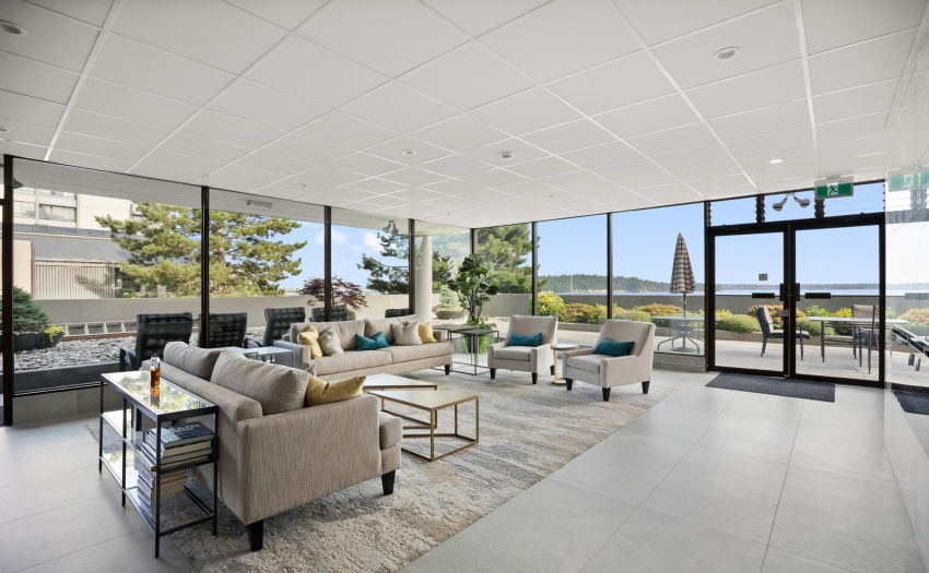 This beautiful waterfront unit will make your transition easy from the big house to the condo on the ocean. This unit is the largest 2 bedroom in sought after Waterford House. 1,725 sq. ft. with huge spaces for your house size furniture. And it comes with an extra large patio perfect for your garden. This is a rare offering. There is also a recently finished stunning lobby for the enjoyment of the owners, with fireplace, games tables, gym and beautiful outdoor spaces right by the water.
