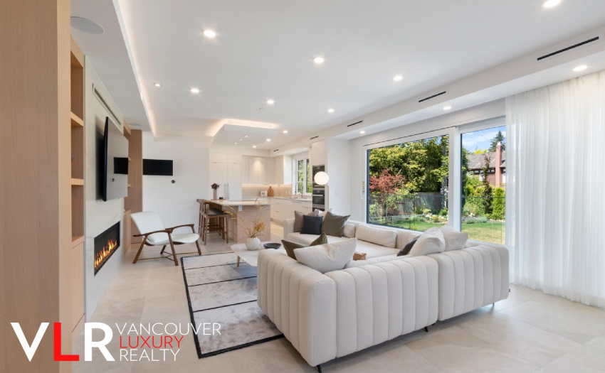 On the edge of West Point Grey in UBC, this unique 5 bdrm home boasts an impressive 70’ frontage landscaped property with tranquil water feature. This home exemplifies luxury and elegance; custom millwork, numerous fireplaces, plus magnificent 3rd kitchen on lower level, perfect as separate suite. Ideal main floor with formal living and dining room adjoins state of the kitchen and family room. 3 spacious bedrooms includes sumptuous master room, lounge with refreshment bar & numerous outdoor areas. 2 more bedrms, sauna roomm and media room at downstairs. Smart home automation, elevator, 3 sets laundry, private gate. Included attached 2 car garage. Close to everything.