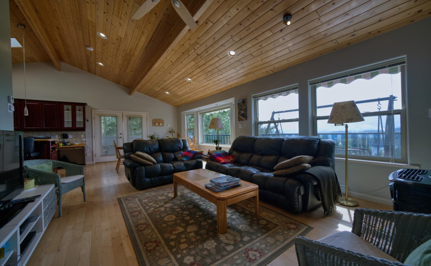 Garden Bay Beauty… This one of a kind beautiful home situated on a .75 acre property boasts a south west unobstructed vista overlooking Garden Bay to Vancouver Island. The main floor has a well equipped professional impressive level kitchen, family room, dining room, great room and compact sunroom. The master bedroom suite has a four piece ensuite bathroom with soaker tub and panoramic view of Garden Bay. The lower floor offer a 1500 square foot family suite complete with it’s own full kitchen. Bonus treehouse for the kids! This home has been meticulously maintained an a must see for the family who enjoys visitors and entertaining.