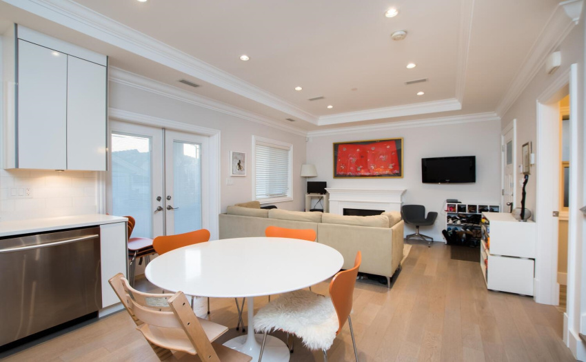 A fantastic 8 year young 1/2 Duplex, featuring 4 bedrooms and 3.5 baths. Main floor with Open Kitchen and living room which is great for entertaining. Main floor has a 2 pce bath and beautiful bright high ceilings with french doors to your private fully fenced back yard. There are many features such as custom kitchen pantry, Stainless appliances, granite counter tops, GAS STOVE, high gloss cabinets, in floor radiant heating,”Air Conditioning”and single garage. Upper floor has three good size bedrooms, and 2 full baths built for family living. The lower floor features a large one bedroom, full bath, kitchen and separate entrance to the back yard. Feel secure with the built in security system.