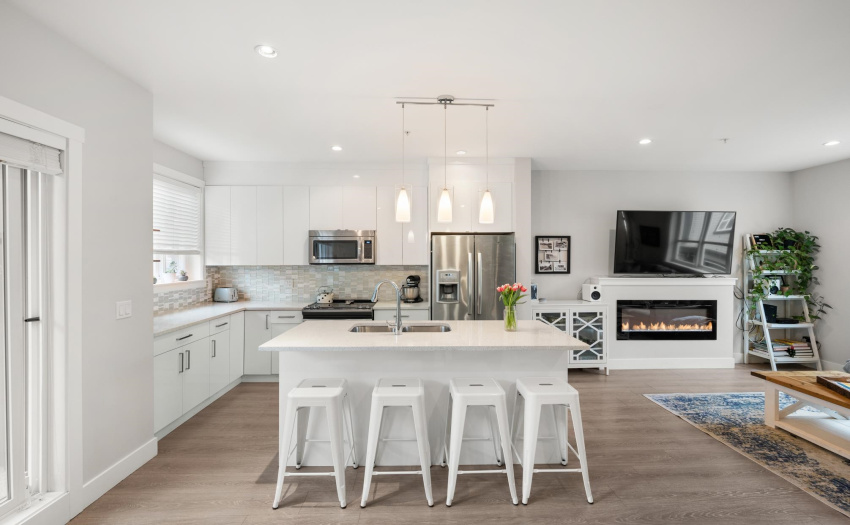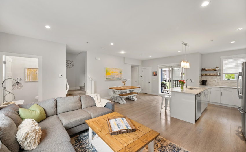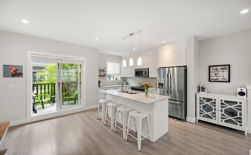 Welcome to this stunning home in highly desirable Willoughby Heights! Custom-designed by the owner with an extra 5 feet of counter and cabinet space, unlike any floor-plan! Interior finishings include white cabinetry, polished quartz countertops, porcelain tiles in all bathrooms w/heated flooring, SS appliances & beautiful laminate throughout. Double side-by-side garage is HUGE & makes entire layout feel wide & spacious. Powder room on main floor. Deck flows from kitchen, great for entertaining. Fully fenced in back yard w/green space. Walking distance to schools, transit, shopping, recreation, parks, grocery store. Very low strata fees! 1 BLK from Richard Bullpit elementary!! Don’t miss your opportunity to own a beautiful home in this fantastic neighbourhood!