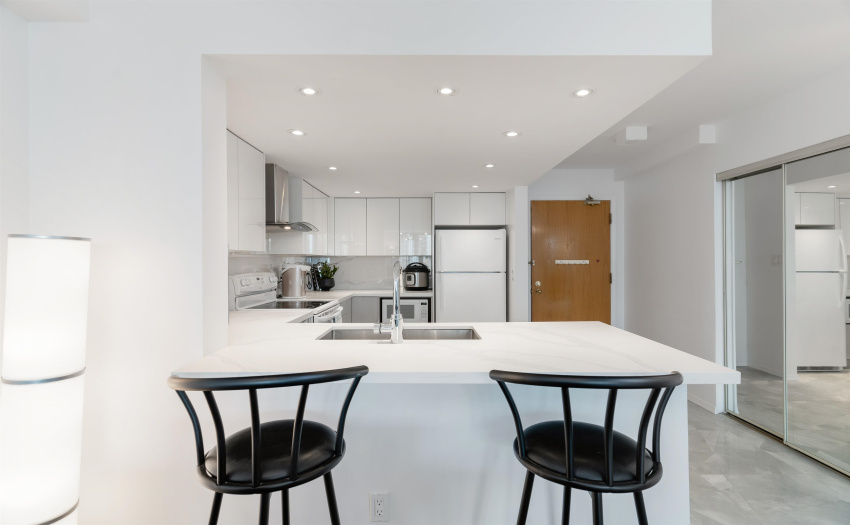 Welcome to LaMirage, a CONCRETE High-rise by BOSA! This renovated 1073 sqft, 2 bed 2 bath, SW corner home features a bright outlook with modern finishes and an open layout. Features include: a 113sqft balcony accessible from living room & bedrooms, spectacular views of Northshore mountain, ocean, Mount Baker, court yard & city, insuite laundry, hot water, 1 parking, & 1 locker. Building is well maintained with rainscreen, re-piping, newer roof and high-quality vinyl windows. Best amenities in the area including: indoor swimming pool, sauna, hot tub, 2 gyms, basketball/squash court, table tennis, library, meeting room & billiards room. Central Metrotown area within walking distance to mall, stores, restaurants, schools, banks, library, parks, & skytrain. Book your private appointment today!