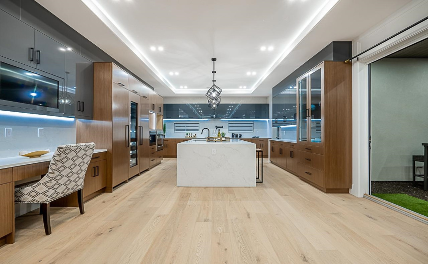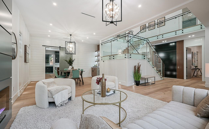 LAKESIDE ultra luxury home in a highly prestigious area of Coquitlam. This south facing 3 level entertainers dream offers 5577 SF of living space and is built on a very rare 8367 sf unexposed services lot. This 8 BD 8 BTH home features a LRG driveway built w concrete paving stones and full security system w remote access, EV charger, & generator. Inside, you’ll find an open floorplan comprised of European style finishings, a two-tone kitchen with rainfall countertops, and a built in sound system w accordion doors which lead to the fully turf yard + golf green. Upstairs features an oversized MBDRM w mood lighting, 4 zone stepless rainfall shwr & LRG soaker tub facing TV. Top floor features a fully turf entertaining space. Bsmt features sauna, theatre/bar, 2BD legal suite + 1BD in-law suite