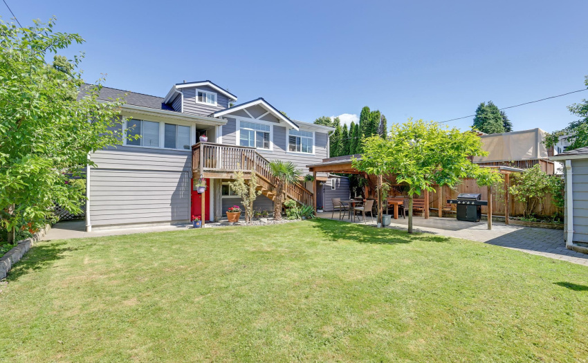 Welcome home to a gardeners paradise with huge south facing backyard and a brand new kitchen (2021) looking out over your children playing. This 7 bedroom, 5 bathroom home on large 49.5 x 122 lot is ready for your family. The main floor features open concept living with fully renovated living room, dining room and kitchen along with two bedrooms and recently renovated bathroom. Upstairs are two bedrooms and a renovated bathroom. The sunny south facing private back yard is a gardener’s delight with it’s mature trees, shrubs, & patio/BBQ area. Many updates including plumbing and wiring leaves nothing for you to do but move in. Basement has mortgage helpers to help pay for it all. Possibility to build a laneway home in the future. Call for your private showing today!