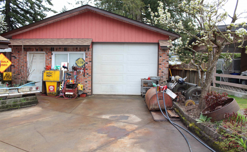 PRICED TO SELL. Situate on a 7,800 sqft lot on a quiet road, this 5 bedroom (possible 7 bedroom), 2 bath home is need of TLC. Main floor features large kitchen and living room with good size covered deck, two bedrooms and oversized 4 piece bathroom. Lower floor has been partially suited with one bedroom and the possibility for two more. Loads of room for storage. LARGE 24ft by 24ft DETACHED SHOP with 12 foot centered ceilings, is a mechanics dream. Back yard is extremely private and backs onto Larch Park with public walkway offering additional buffer from neighbouring properties. Lots of room for RV Parking as well as vehicle access to back yard. Zoned RS3 allowing for duplex, coach home potential (contact City of Abbotsford for specifics). Great school catchments.