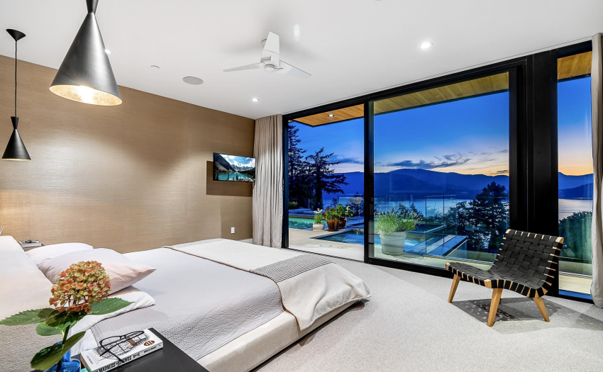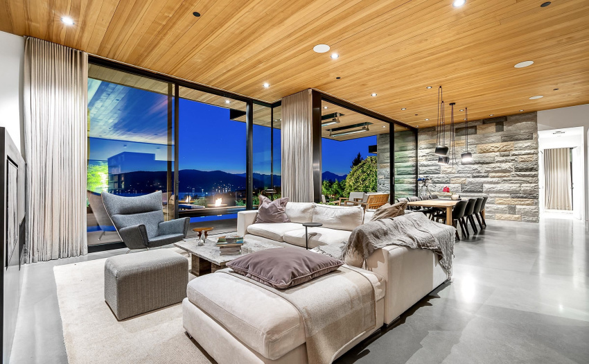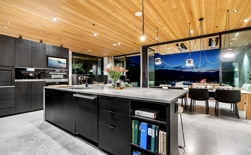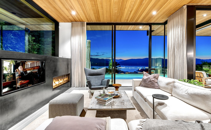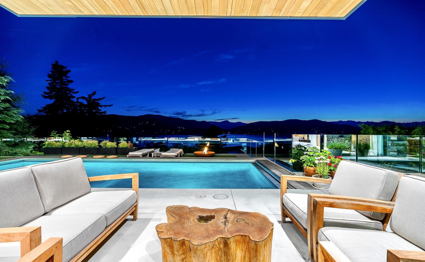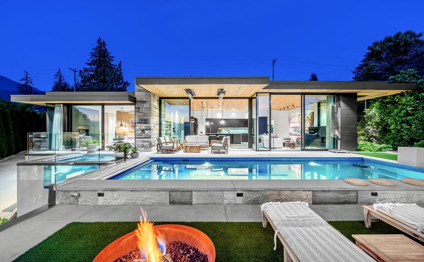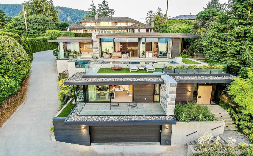 Exquisitely designed by award winning architect – Fritz De Vries – situated on a private 1/3 acre property & overlooking 180 degree ocean & island sunset views! Concrete floors, automated lighting control system, heated driveway, commercial grade heating, AC system & aluminum anodized windows w/ flush doorsills. Walls of glass, custom multi-colored granite exterior & security, custom built-in cabinetry & millwork. Main – Lrg living & dining w/ fireplace & media centre, kitchen w/ lrg center island, appliances, breakfast bar & separate pantries, 4 full bdrs, master w/ spa-like ensuite. Lower – office, utility room, 2-car garage, storage, recreation room or games room. Entertainment patios & lounge areas w/ outdoor gas fire pit, outdoor pool & hot tub w/ automatic retractable safety cover.