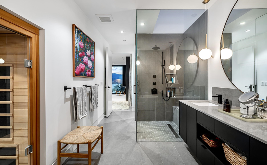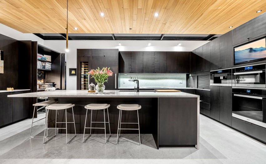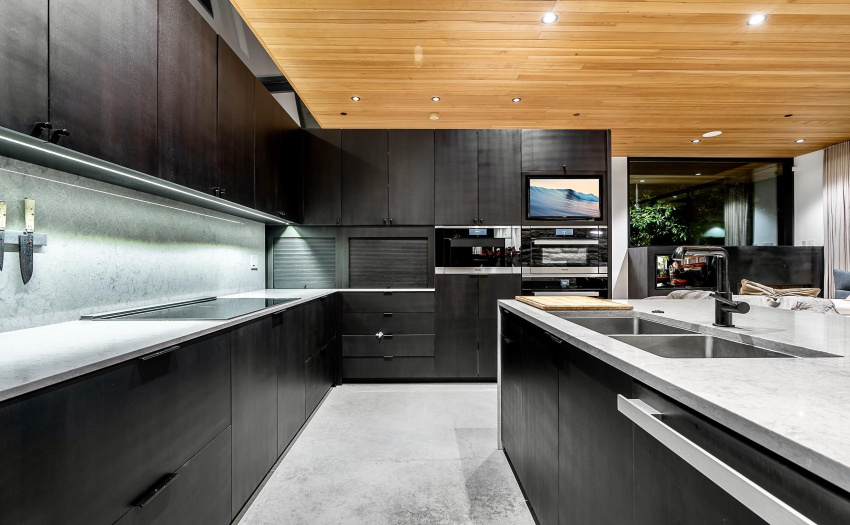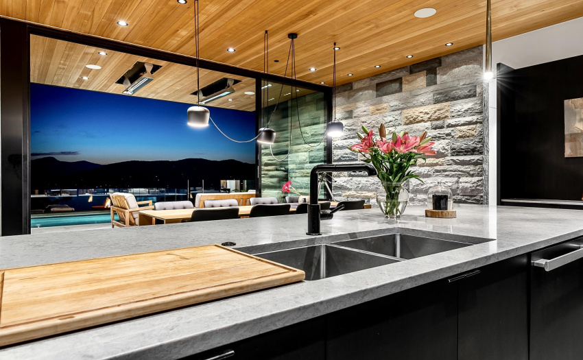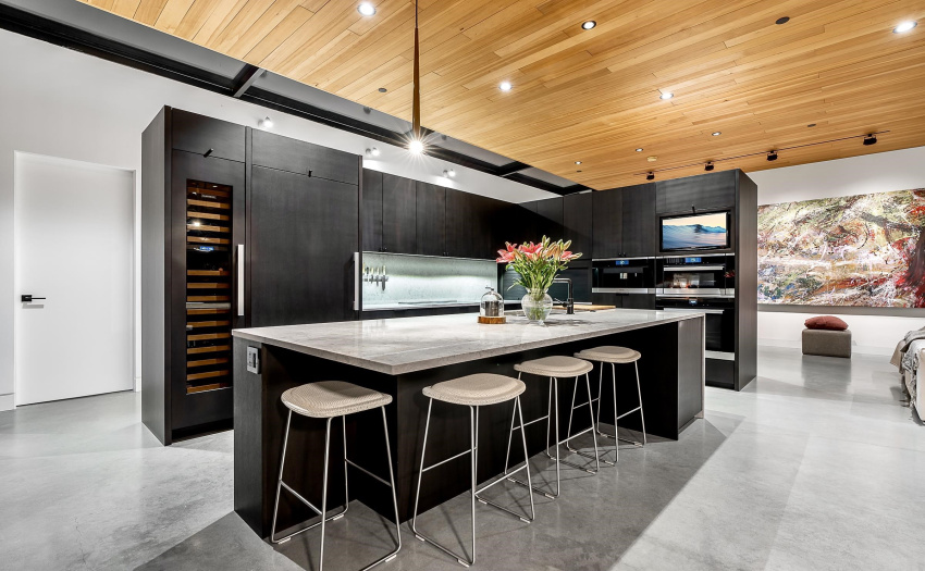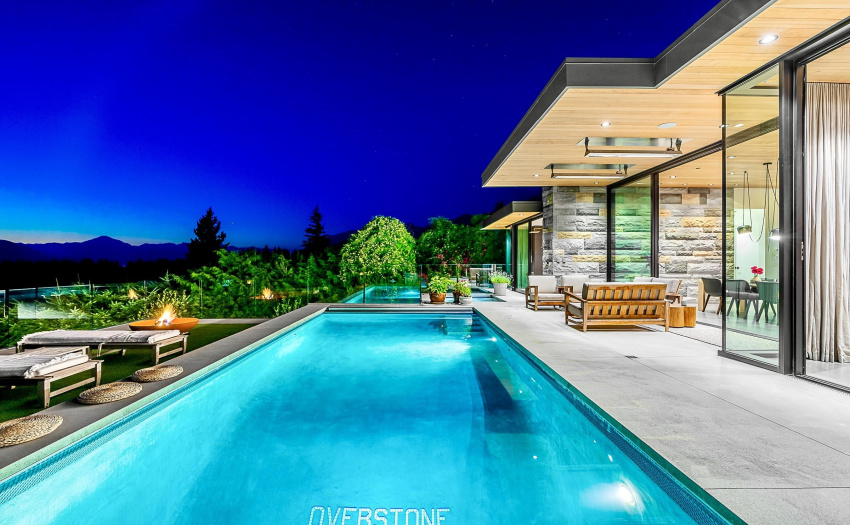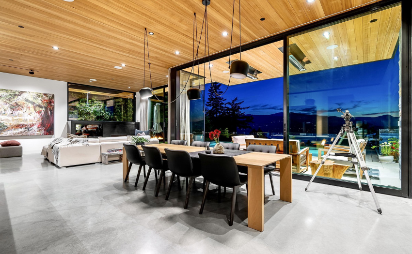 Exquisitely designed by award winning architect – Fritz De Vries – situated on a private 1/3 acre property & overlooking 180 degree ocean & island sunset views! Concrete floors, automated lighting control system, heated driveway, commercial grade heating, AC system & aluminum anodized windows w/ flush doorsills. Walls of glass, custom multi-colored granite exterior & security, custom built-in cabinetry & millwork. Main – Lrg living & dining w/ fireplace & media centre, kitchen w/ lrg center island, appliances, breakfast bar & separate pantries, 4 full bdrs, master w/ spa-like ensuite. Lower – office, utility room, 2-car garage, storage, recreation room or games room. Entertainment patios & lounge areas w/ outdoor gas fire pit, outdoor pool & hot tub w/ automatic retractable safety cover.