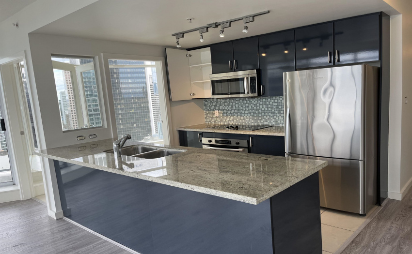Freshly painted and immaculately clean… WOW – what a view -Stunning views of the ocean and the North Shore mountains are enjoyed from this 2 bedroom, 2 bathroom, and den/storage like a 3 bedroom in the heart of downtown and in the prestigious Coal Harbour location in the south after Sapphire Building ! Excellent location! Excellent layout, kitchen with granite countertops, and top of the line stainless steel appliances, and in-suite laundry. The building offers concierge, gym and sauna and walking distance to most amenities. Located in the business district with all the entertainment that Vancouver offers; near Stanley park; restaurants; shops. Theaters, etc. Rent includes one underground parking. Minimum One Year Lease. Available September 1st., No Smoking, No Pets.