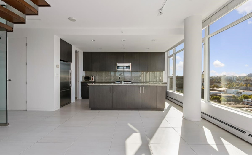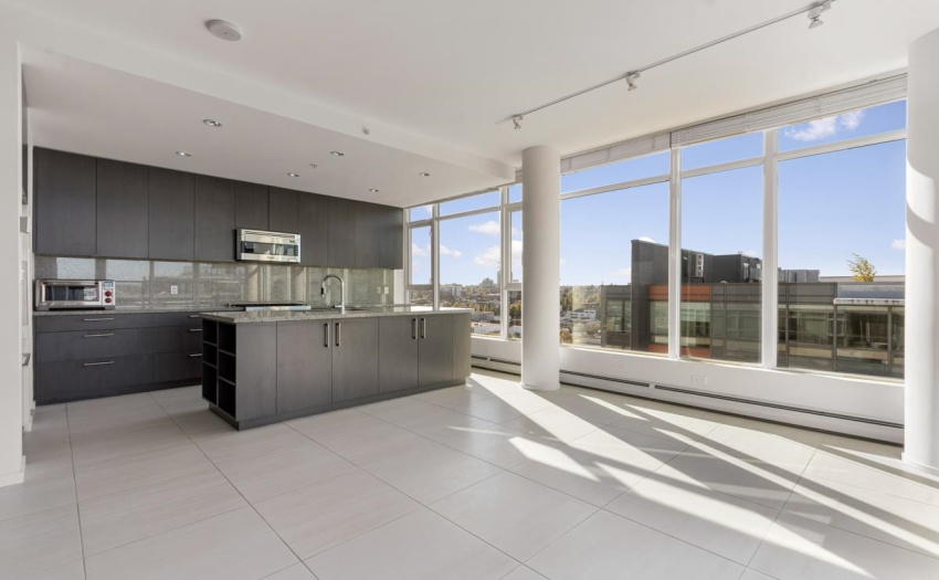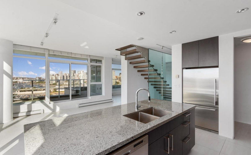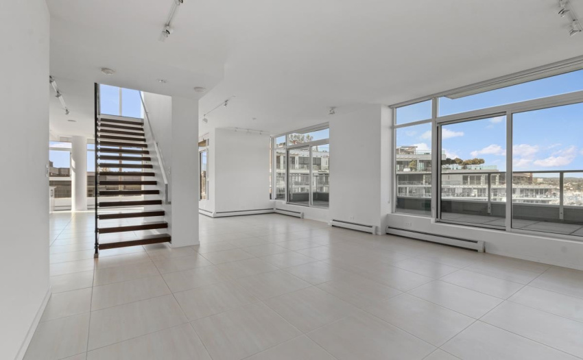 This exquisite South West facing, 2 lv, 2 bd&2bth Penthouse at the Wall Centre in the heart of Olympic Village, False Creek is move in ready. Designed by Urban Arts Architecture, w exquisite attention to detail, this is a unique amalgamation of 2 strata lots, custom designed to become one large unit of just under 2000 SF, has floor to ceiling windows for plenty of natural light, multi functional and open living spaces. Boasting unobstructed 270 degree views from Mt Baker to the North Shore. Large&open entertainment spaces on the main floor with a great flow to the 400 SF balcony that provides plenty of outdoor space to enjoy! Spacious kitchen area, complete with pantry, comes with stainless high end appliances and wine fridge. 2 parking & 2 storage lockers. Pets welcome on approval.
