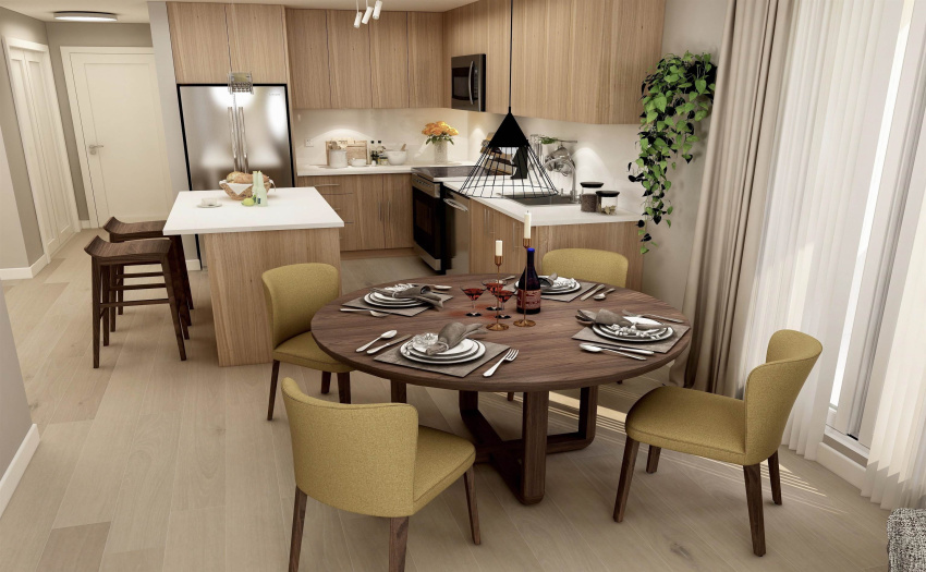 Nicomekl Garden, the newest addition of modern condominiums positioned on the edge of Downtown Langley, just 10 minutes of leisure walking away from the future Skytrain Station. Nicomekl Garden is part of a lively surrounding, just steps from plaza, grocery stores, boutiques, and restaurants. Nicomekl trails at your door step offer optimal enjoyment of tranquil nature. The 4 storey building features homes designed with attention to detail and a perfect mix of style and functionality infused to each home. Featuring 9′ ceilings, open concept living, stainless steel appliances, high quality cabinets and flooring. Being on the 4th Floor there is no one above you.