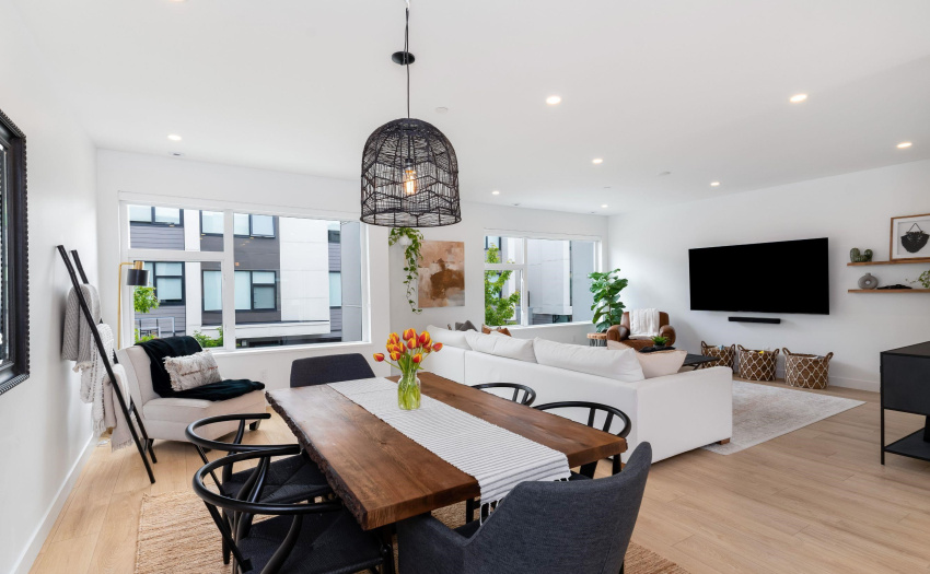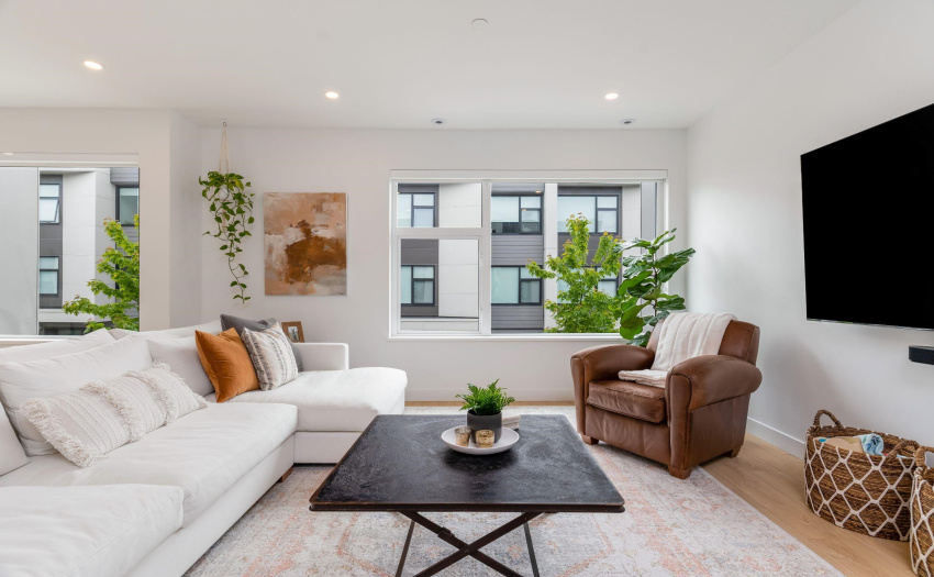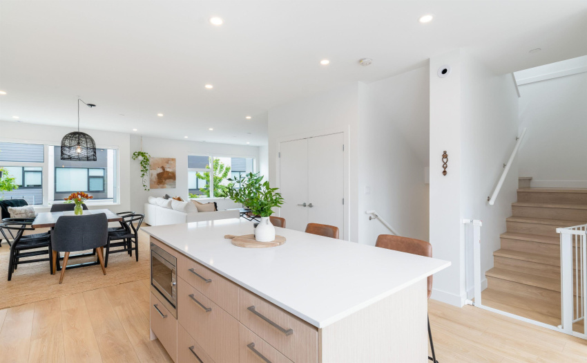 Welcome to Hilltop, the newest collection at Seymour Village where nature & home weave beautifully together. This contemporary 5 BED, 4 BATH, 3 LEVEL TH is a showstopper complete w/9′ ceilings, open concept living w/smart lighting & t-stat, entertainer’s kitchen w/huge centre island, gas range/oven, SS apps, pantry, DBL garage + driveway & a sunny south facing fenced backyard. Special developer upgrades inc. HW flooring all levels, roller blinds, extended patio space, hot tub w/privacy screen, A/C & radiant heat in Primary Bed ensuite. Lower level w/bedrm & ensuite terrific for guests/teens. Family community w/secure neighborhood playground. Close to shopping, trails, skiing, golf, schools & more! Immersed in beauty, this is West Coast living at its finest.OH SAT, SEP 17, 1:30PM – 3:30PM