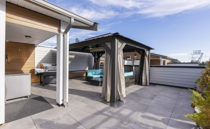 Enjoy your beautiful roof top terrace at Berkeley Village one of South Surrey’s Premier Townhome Complexes. Your spacious 3 Bed + Den home offers an open concept floor plan with quality finishing and incredible craftsmanship. Main floor features 9 ft ceilings, generous living and dining areas, entertainers kitchen plus a spacious den. Upper level has 3 spacious bedrooms plus 2 bathrooms and laundry. Private rooftop deck is the perfect space for entertaining as it features a prep area, bar fridge, heater, gas hook up and a bonus covered area with a TV mount. Amenities include a 3-level clubhouse boasting a gym, yoga room, board room, craft room, lounge & guest suite. Centrally located as you are within walking distance to schools, shopping, restaurants and have easy access to the Highway.