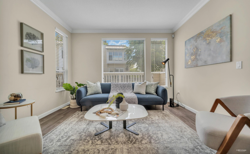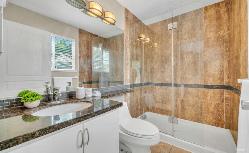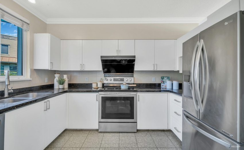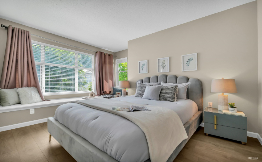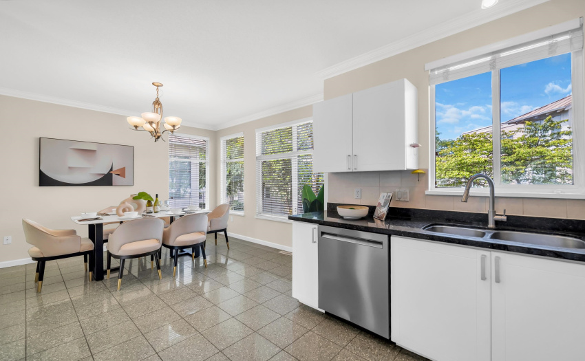 The onw you’ve been waiting forb in the well managed complex by Polygon. LIGHT FILLED CORNER UNIT 4 BEDROOMS 3 FULL BATH in quiet and private location. High ceiling main floor with cozy fireplace, huge eating and kitchen area overlooking beautiful garden with a lot of green and flowers. Large wrap around windows & balcony & skylight. Great layout on upstairs with brandy new floor. Master bedroom has bay windows & seating area, 2 other bedroom facing the garden. The 4th bedroom in basement with separate entrance and in-suite could be your perfect office/gym/ guest room. Garage 2 side by side parking. Steps away from schools (Elementary Kathleen McNeely ranking 174/931, Cambie High School ranking 89/252), King George Park, Community Centre, Shops & restaurants. OPEN HOUSE SEP.17&18 2-4PM