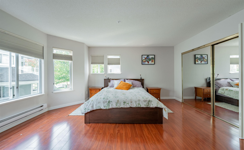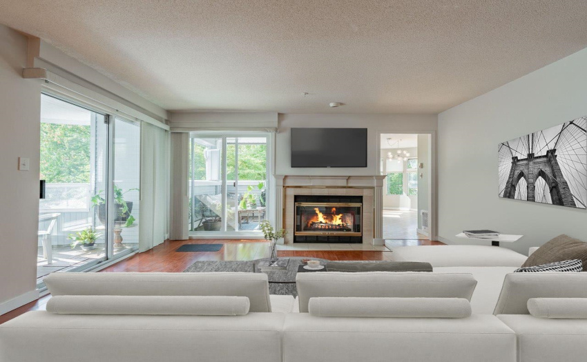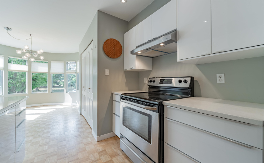 Welcome to beautiful Springs at Langara! You must see this beautiful and so private SW corner unit boasting 2 bedrooms, 2 renovated full baths, and 2 fun filled balconies facing Winona Park. Walk in to gleaming hardwood floors with large entry closet. House size formal dining room and living room with gas fireplace, opening up to both balconies. Recent renovated kitchen is so bright and spacious with a large sun filled eating area facing the park! Enormous master bedroom – perfect for a kingsize bed – has plenty of closet space and a stunning spa ensuite. Second bedroom is cross hall and is also spacious. Well maintained and upgraded complex offers indoor pool, jacuzzi, gym, gorgeous gardens and pond. So close to transportation, schools and Oakridge Mall. Open house Sat Sept 17, 2-4pm.