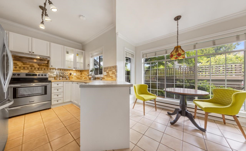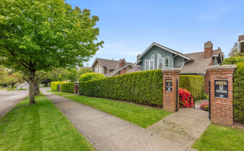 Welcome to Grace Estates, a beautiful gated community in the heart of South Cambie. This tastefully renovated, side by side Duplex Style Townhouse feels like a Detached home. It features a spacious & functional layout with 3 bedrooms upstairs, high ceilings, tons of natural light, French doors, updated kitchen & bathrooms including new cabinets & quartz countertops, sun soaked South facing patio & garden. This location is simply perfect! It lies on a tree lined street, just 1 block from Braemar Park, and yet just 5 minute to King Edward Skytrain, Queen Elizabeth Park, and Hill Crest community centre. This is a must see! 2 parking spots and 2 storage lockers included.