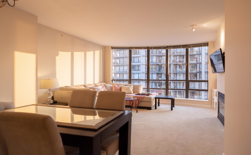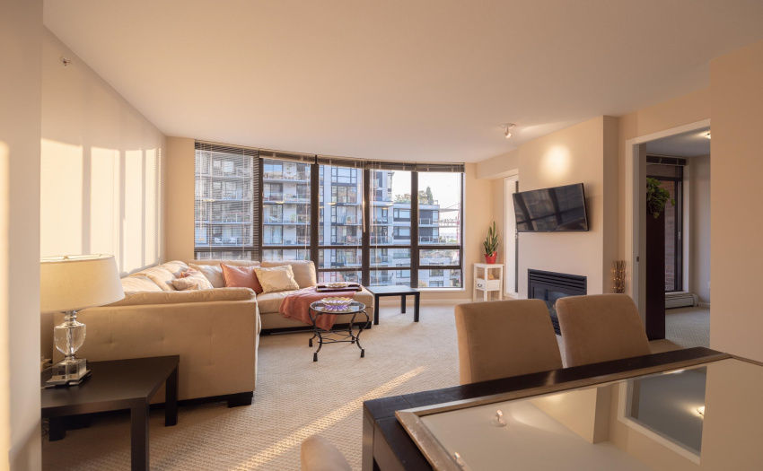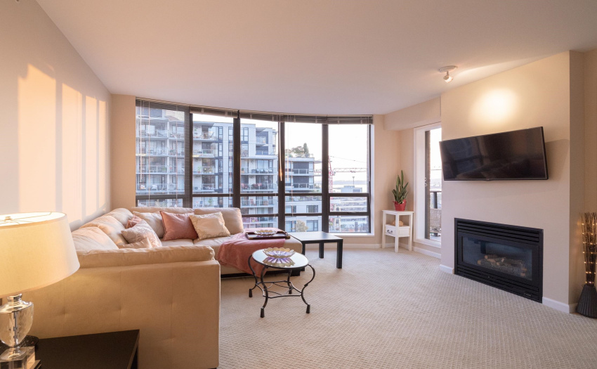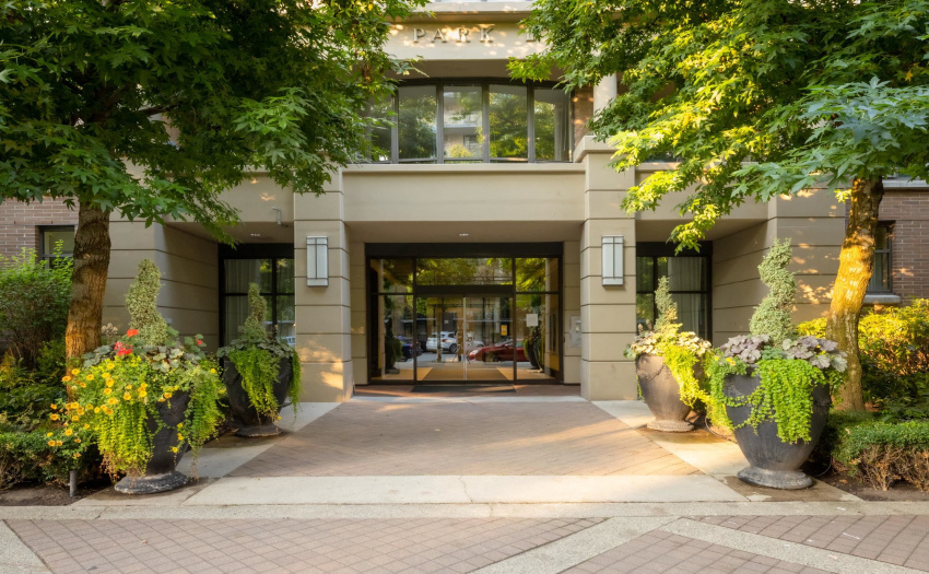 Southwest water & Lions Gate Bridge views all the way to the North Shore Mountains! Plenty of natural light in this immaculate 735 sqft, 1 bedroom +DEN at One Park Lane! The “05” modern open concept plan features a very wide living room, high South facing bay windows & 2 access doors to the covered view balcony. Kitchen boasts dark wood cabinets & granite tops. Bedroom openly connects to den & cheater ensuite. Insuite laundry closet room. Gas fireplace. BRAND NEW neutral paint has rejuvenated all walls, doors, baseboards & ceilings! Newer carpets (2021). 1 Parking/1 BIG LOCKER. pet friendly/Rentals Allowed. One Park Lane has a New York City flare w/a concierge, gym, party/movie rooms. PRIME LOLO LOCATION in the heart of the city pulse! HOME IS HUGE INSIDE. Open Sun Sept 18/2-4