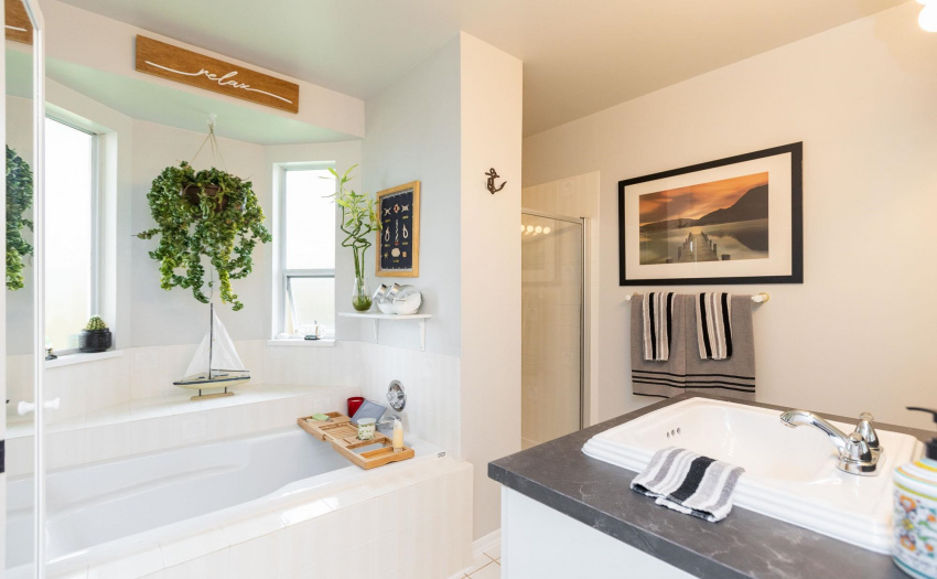 RANCHER WITH LOFT IN SUNSHINE HILLS! Chateau Wynd is a lovely community of just 18 duplex style homes with friendly neighbors. This home feels like a house with over 1500 square feet of living space. 3 bedrooms and 2 full bathrooms. 2 bedrooms on the main and 1 up in the loft. Bonus office space too! Updates include engineered wood floors and fresh paint, nothing to do but move in. Master ensuite includes a soaker tub and separate shower. Side by side double garage. Large fenced private yard with patio. Just steps to transit & shopping. Walking distance to sought after Cougar Canyon Elementary & Seaquam Secondary with IB program.