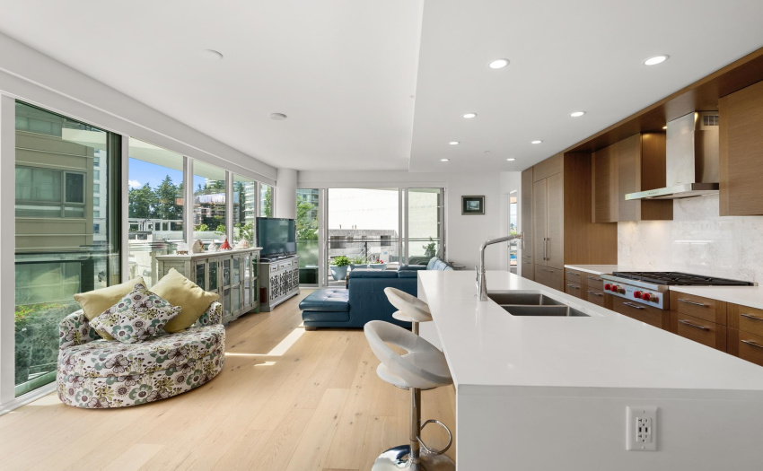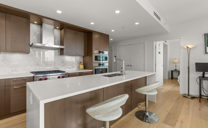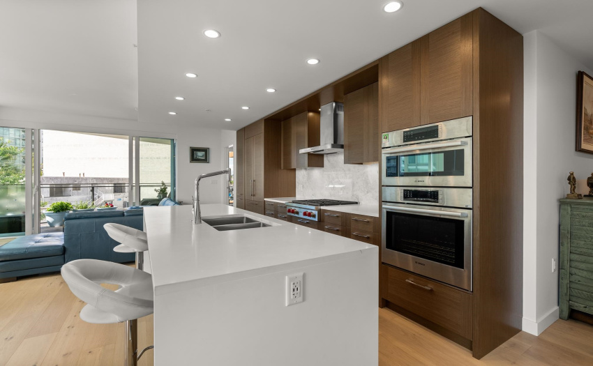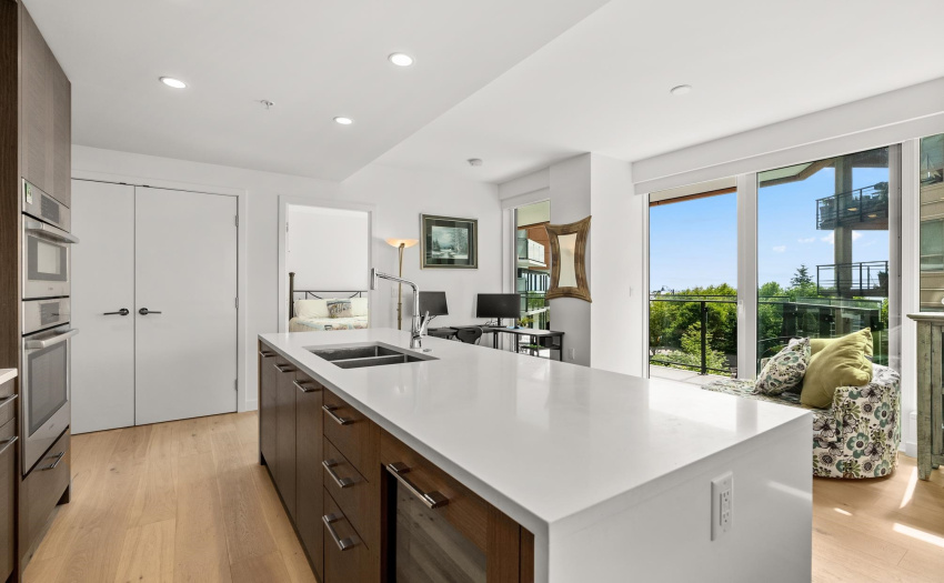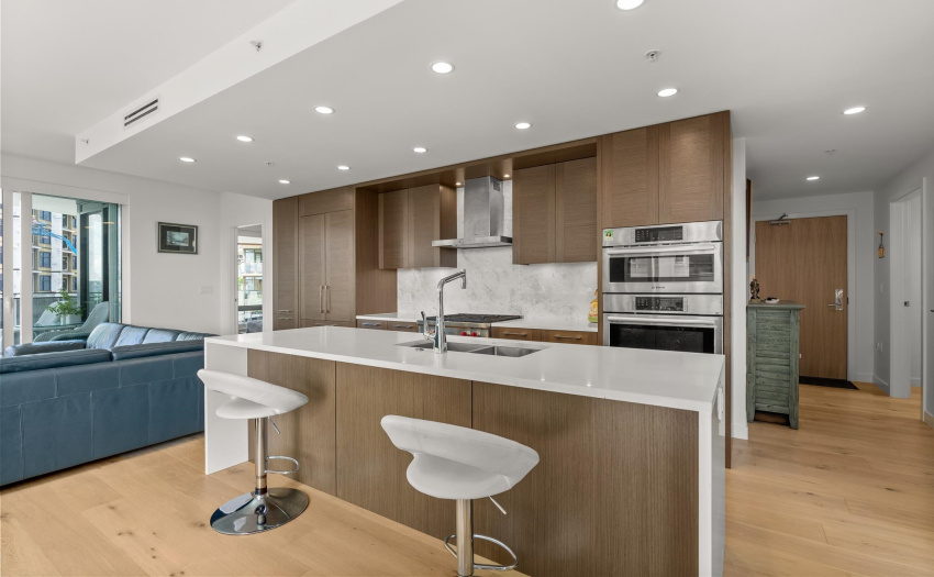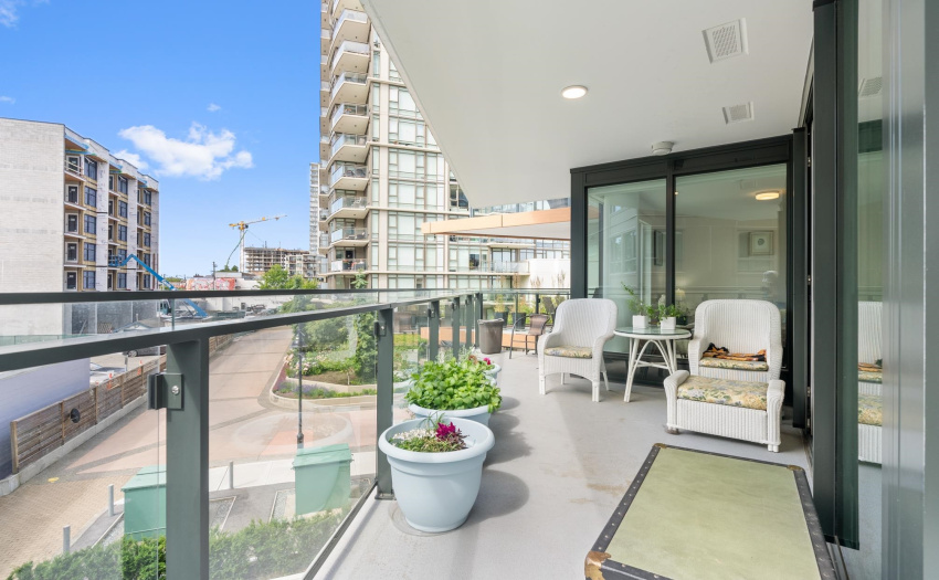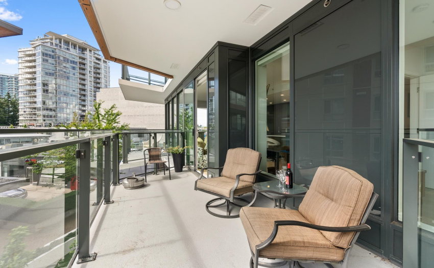 Welcome to Semiah by Marcon, White Rock’s most convenient location and sought-after luxury condos. Architecturally designed to enhance ocean views and natural light, this bright and functional 1130 Sqft 2 bedroom 2.5 bath home has expansive floor to ceiling windows and an immaculately designed interior featuring; wide-plank engineered wood flooring, sleek motorized roller shades, Wolf Gas Range and integrated Bosh appliances, wine fridge, custom wood cabinetry and quartz countertops, spa-like ensuites with floor to ceiling marble tile, side by side full sized LG laundry and forced-air heating and cooling. Includes 2 Parking 1 Storage. Outside the home is wrapped in two oversized patios totalling 362 sqft of deck space to soak up the sun, watch sail boats go by and enjoy the ocean breeze!