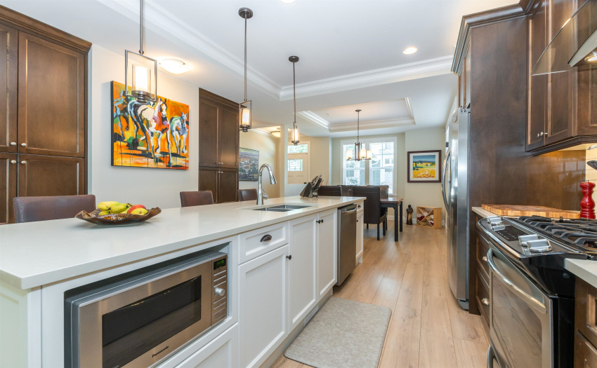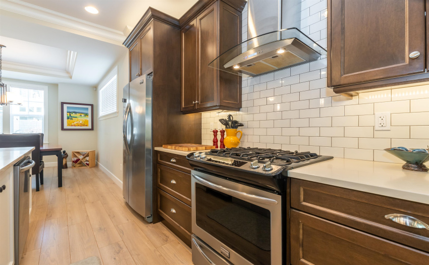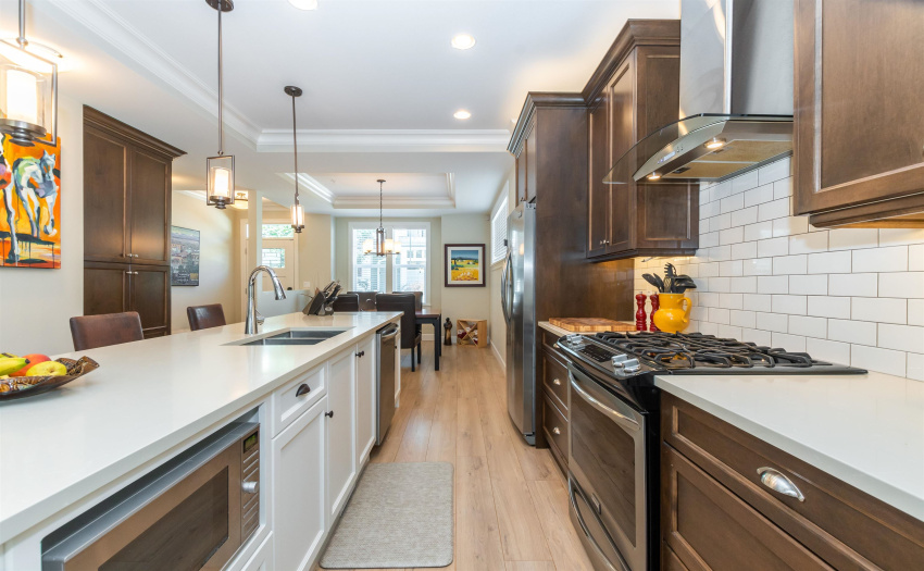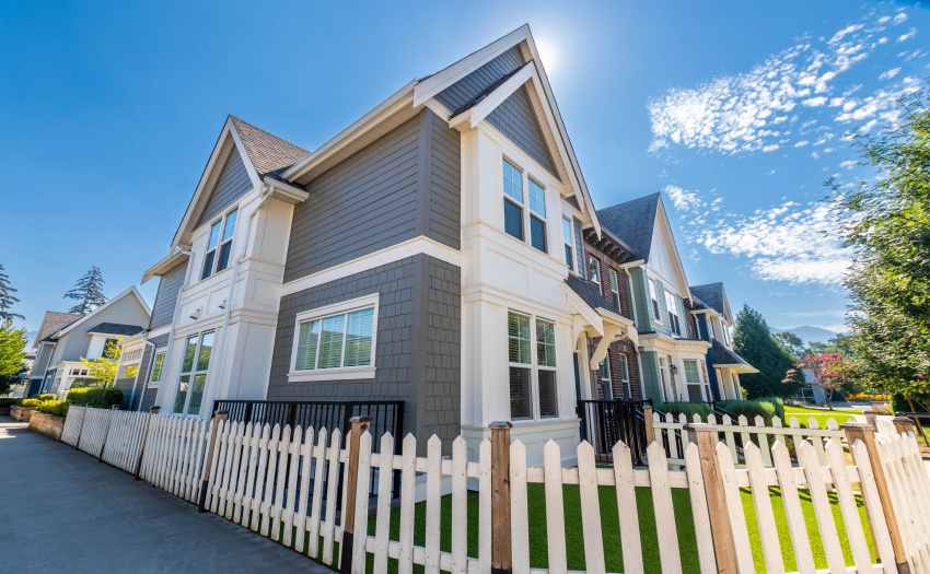 Welcome to Brixton Station Phase III; Located in Chilliwack’s Premiere neighbourhood, Garrison Crossing. Within walking distance to the Cheam Recreation Center, Restaurants, Grocery Shopping, Banking, Liquor Store, the Vedder River, the popular Rotary Trail and so much more. This +/- 2,100 s.f., 3 bed/3 bath END UNIT does not disappoint with its tasteful upgrades and quality finishings such as Central AC, Crown Mouldings, Central Vac, Garbage Disposal, Stone Countertops, Nat. Gas BBQ Hookup, Freestanding Designer Bath Tub, dbl sinks, tiled shower… too many to list here. The open Main Floor features a kitchen with large island and upgraded appliances (gas stove!). Secure underground parking with direct access. Built by award-winning Algra Bros., what more could you want? Get in!