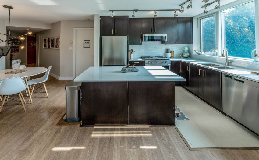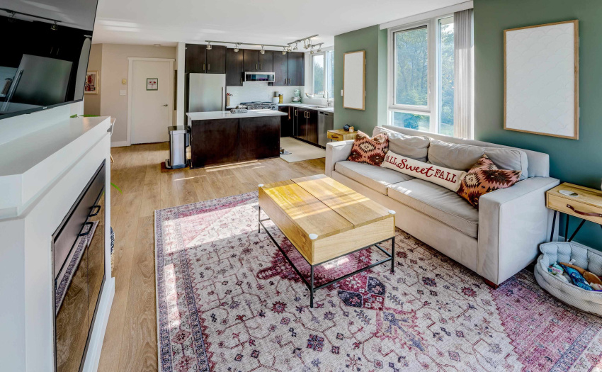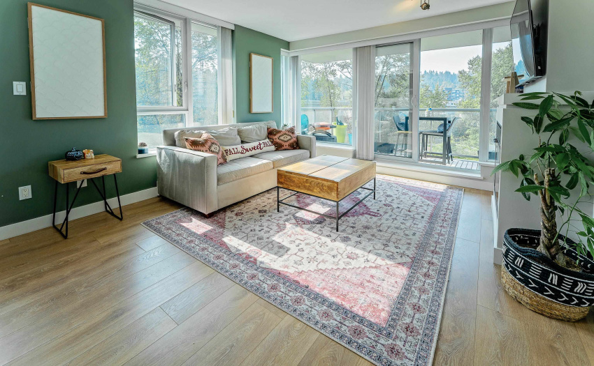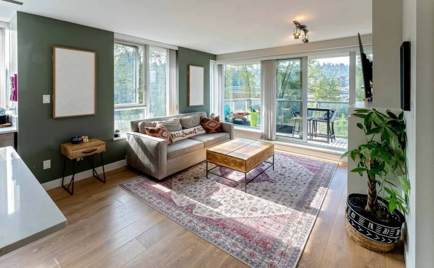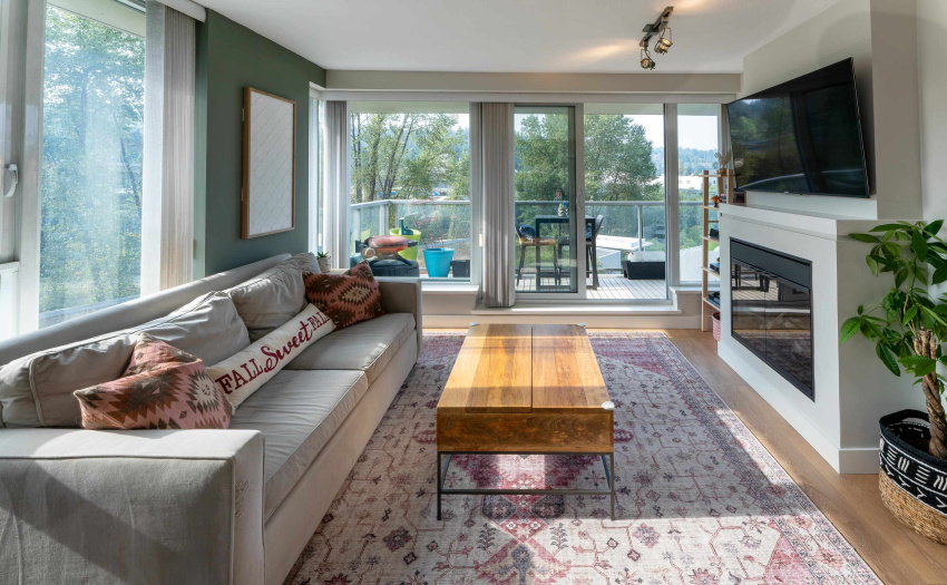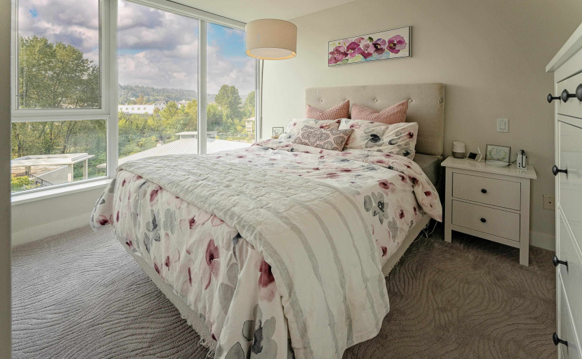 LOCATION, VIEW, CORNER UNIT ~ “Sahalee” quality CONCRETE construction built by Polygon. 2 bed/2 full bath BRIGHT & NATURAL DAYLIGHT south-west facing. Features open concept living, floor-ceiling window, gourmet kitchen w/large island & plenty of cupboards/counter space. 2022 upgrades incl. counters, hi-end stainless kitch appliances, new sink & hardware. 2020 upgrades incl. W&D, paint, wide-plank laminate floors & carpet. Beautifully maintained & move-in ready. Incredible amenities incl. full size gym, 15000 SF club house (Canoe Club) w/tennis court, outdoor pool/hottub, movie room, party room, & more. Walk to Skytrain, Suterbrook & Newport village shopping, Rocky Point/trails, and all other amenities you will need. MUST SEE https://youtu.be/0-mMwnoGoDY