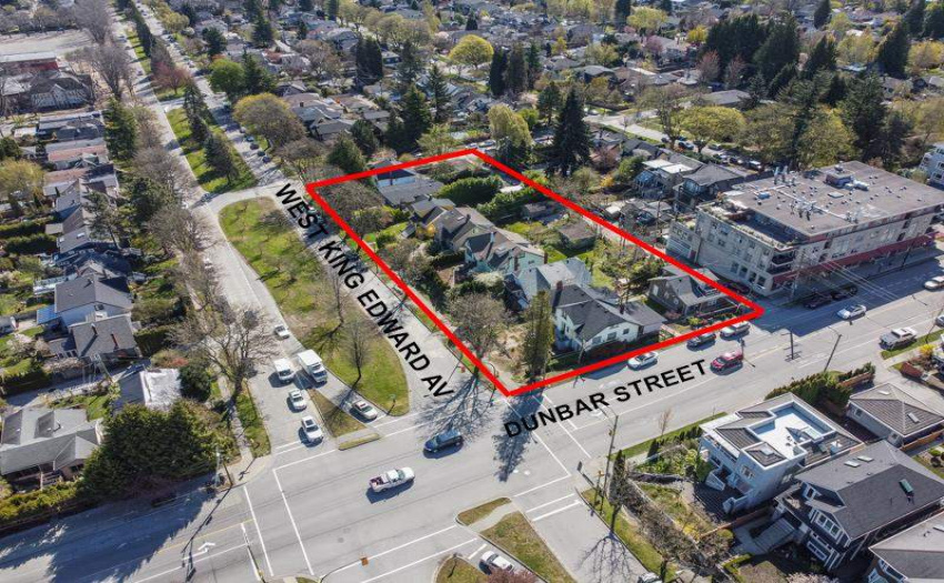 Land Assembly on the Southeast corner of Dunbar and West King Edward. More than one acre (45,587 square feet) with potential for Secured Market Rental, mixed-use, market condominiums or Elders’ residence. Currently zoned RS-5. City, Ocean, and Mountain views for the upper floors of a potential new project. At the Gateway to the Dunbar High Street and a world of convenience. Walking distance to Stong’s Market, Shoppers and London Drugs. Great possibilities await in this coveted neighbourhood of tree lined streets with transit, schools and parks at your doorstep. Buyers to do their own due diligence with the City of Vancouver for all matters relating to the subject homes.