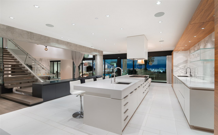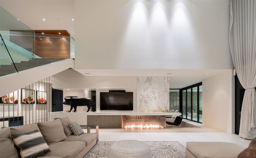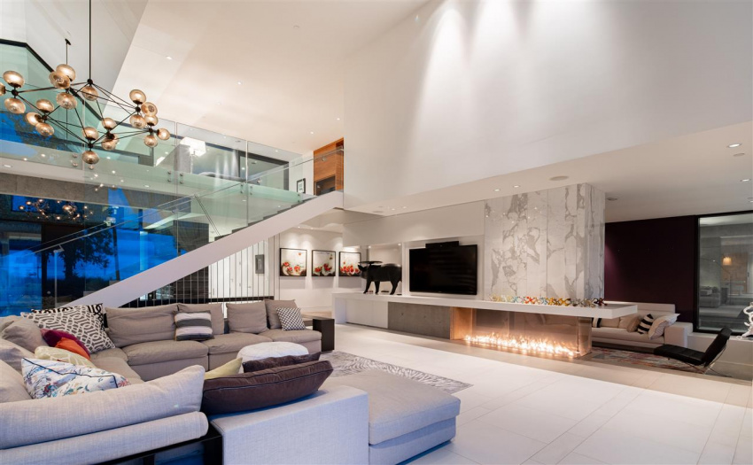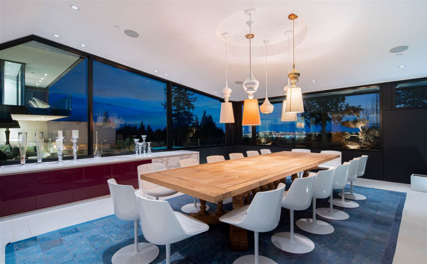 A truly modern architectural masterpiece by Mcleod Bovell Modern Houses that is not only unique and beautiful, but also functional and maximize the sweeping views of Downtown Vancouver and the Ocean. This concrete constructed contemporary home is situated in a gently sloped 27094 sq ft lot, with over 10000 sq ft inside, bright and spacious. The double height living area is open and airy. Through the huge aluminum glass pivot doors which created smooth transition from indoor to outdoor living, is the expansive outdoor area that is covered by 25 ft roof overhang that allows the family to enjoy all year long, with compliments of BBQ area, fire pits and infinity pool overlooking the fascinated views. Each section of the home is seamlessly blending into the next for a cohesive feel.