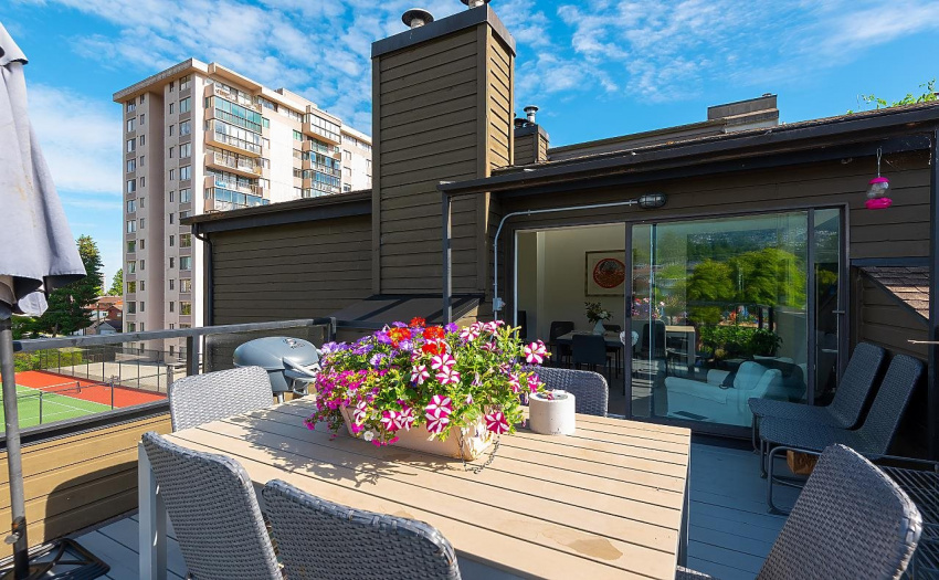 This beautiful 3 bedroom, 2 bathroom penthouse has been recently renovated and is situated in the heart of Ambleside. Special features of this bright and spacious suite include vaulted ceilings, skylights, gas fireplace, new kitchen and a large private deck that enjoys all day sun and stunning views of the North Shore mountains. A second east facing deck provides morning sun. Walking distance to all that Ambleside offers: beach, seawall, restaurants, shops, public transit. A special opportunity to own this gorgeous penthouse in the most wonderful location.
