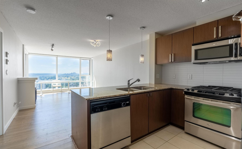 First-time home buyers and investors alert! Why pay a high price in Vancouver when you can live in an amazing 1-bed & 1-den in Burnaby approx 35 min Skytrain from downtown? Enjoy this fantastic open layout featuring delight kitchen w/ gas range, granite counter & brand new laminate floor in the living room and den. Large master bedroom w/ two closets perfect for a couple. Breathe in the spectacular unobstructed views from your bedroom, living room & balcony! Great location, walking distance from all services (Save On Foods, restaurants, coffee shops and Lougheed Town Centre), 7 min drive to SFU. The building has a nice terrace garden, cool clubhouse and gym & guest suite. One storage locker & parking included. What else do you need?