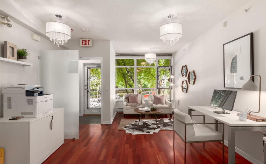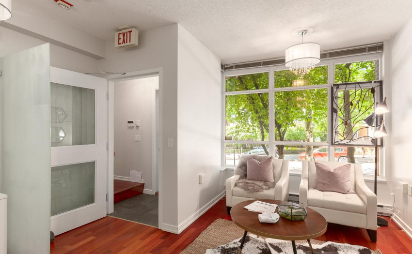 UNIQUE LIVE/WORK TOWNHOME in the heart of downtown. This 3 storey walk-up home features a dedicated office storefront on the lower level with a powder room and storage. The main level boasts a cozy dining room, kitchen, and spacious living room with a gas fireplace. Upstairs the master bedroom has a large closet and jack-and-jill 4/pc ensuite bathroom. The second bedroom is a perfect guest room. Bonus ultra-private ROOFTOP deck with tons of sun exposure. Enjoy the convenience and flexibility this home has to offer. Access to a private building courtyard with a lush canopy of trees. 1 secure underground parking stall and 1 storage locker included. Steps to downtown shopping, restaurants, cafes, and hotels.