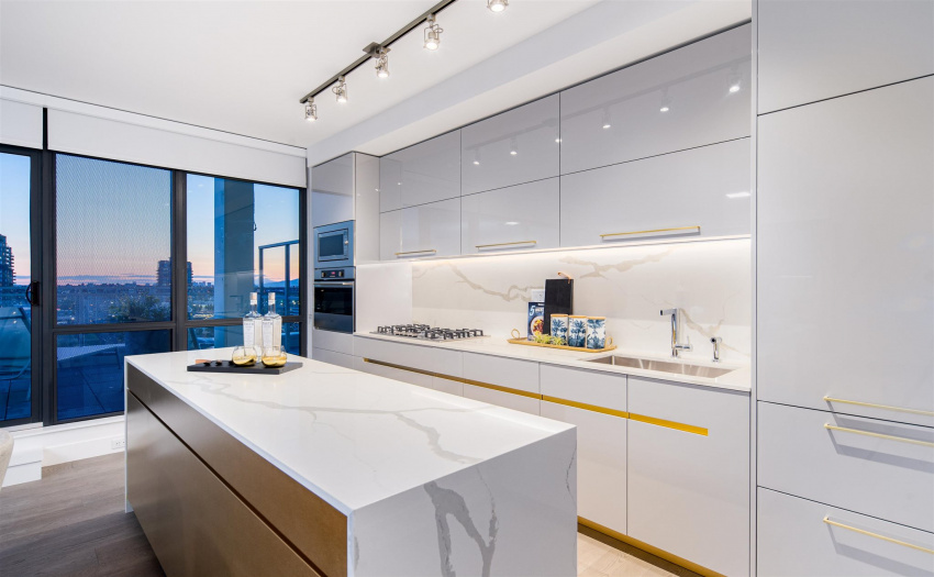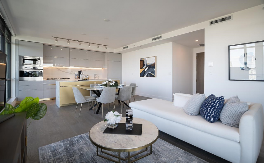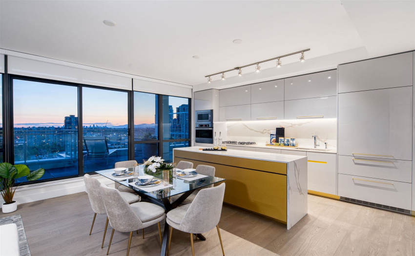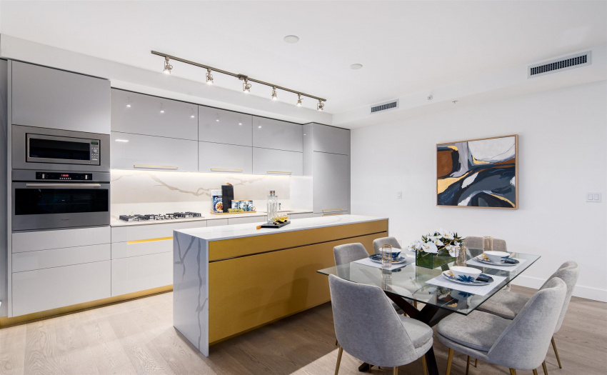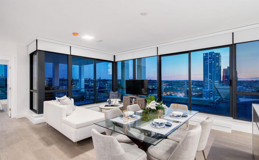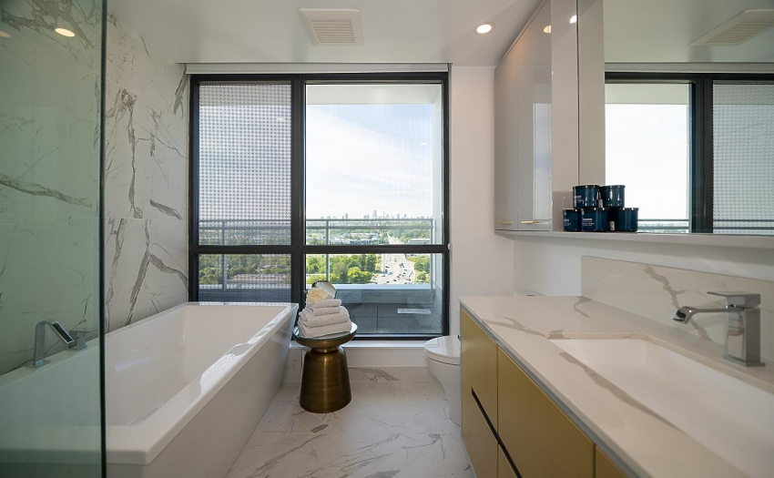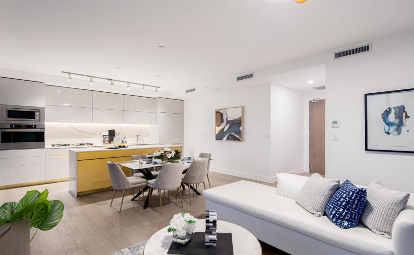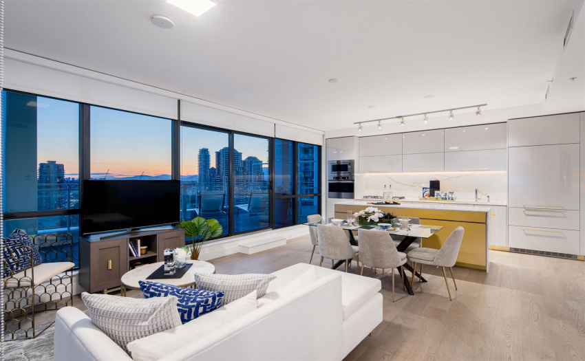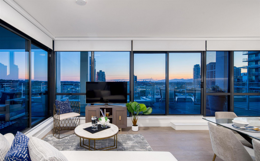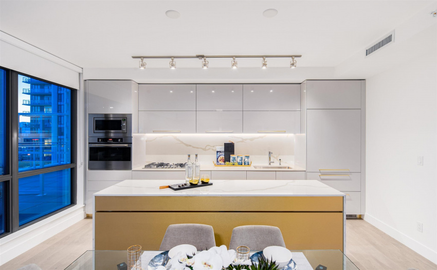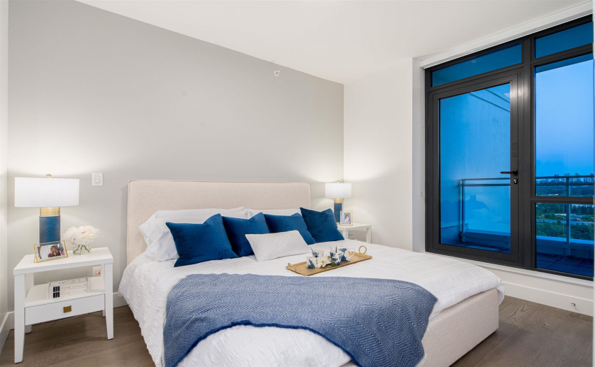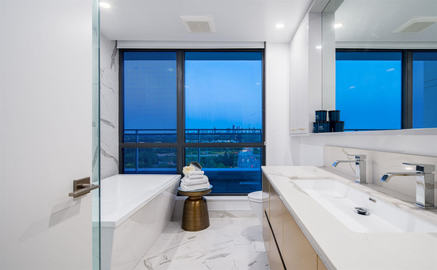 A limited, move-in ready Private Collection home at Bordeaux built by award-winning developer, Solterra. This home features 433 sq ft of outdoor space w/expansive SW views of the Metrotown skyline. Floor to ceiling windows throughout the home to maximize natural light w/central AC/heating. Private balcony off the master bedroom. Spa-inspired ensuite w/heated flrs, free-standing tub, & walk-in rain shower. Stunning imported kitchen cabinetry from Italy with full sized appliances including Liebherr & Fulgor Milano brands. 2 parking stalls & storage locker. Spectacular amenities: business centre, gym, social lounge, BBQ area, children’s play area, & more. Don’t miss this incredible opportunity to own in a one-of-a-kind building. Open Saturday-Thursday from 12-5pm, 4488 Juneau Street Burnaby