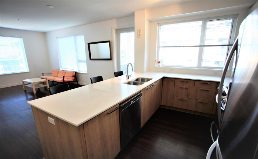 The “Nest” by Mosaic Homes. Corner Sub Penthouse unit. Situated in a superb location with Nesters Market, liquor store, restaurants, elementary school & daycare all within walking distance. This spacious home is bright & airy with 9′ ceilings. Laminate flooring throughout & added closet, Hydronic in-floor radiant heat included in strata fee. Energy Star Appliance package, soft close drawers, built-in recycling bins, spice racks & quartz counters. Ensuite w 2 sinks & separate shower. Main bath w soaker tub and quartz counters. Enjoy all the SFU amenities including fitness, theater and library. Excellent transit access to buses & skytrain. Hiking & biking at your doorstep. 2 Parking Stalls & 1 Locker included!