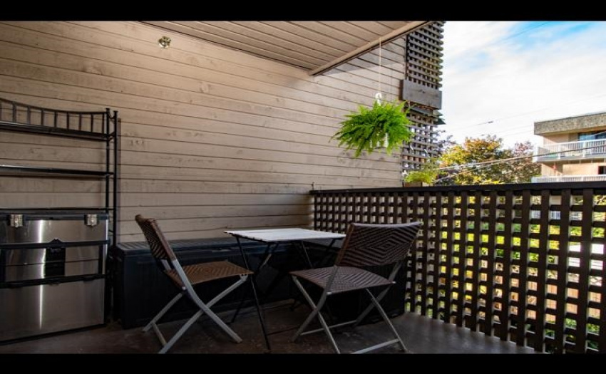 Huge covered balcony with this 1 bed, 1 bath home at the Dharma Digs, right in the heart of The Drive. Efficient layout, nicely renovated. Kitchen and bathroom renovated in 2017: stainless steel appliances, task lighting, soft close cabinets and draws, laminate flooring. Very private space. Large storage closet/ mini-den just off the entranceway. Balcony is fully covered, great for year round use. Top location, walk to everything. Building is known for its warm, inclusive community. New roof, boiler, re-piping all within the last 10 years. 1 underground parking space included. Pets and rentals area allowed. Showings by appointment only. More info and a full description on our web site, look us up!