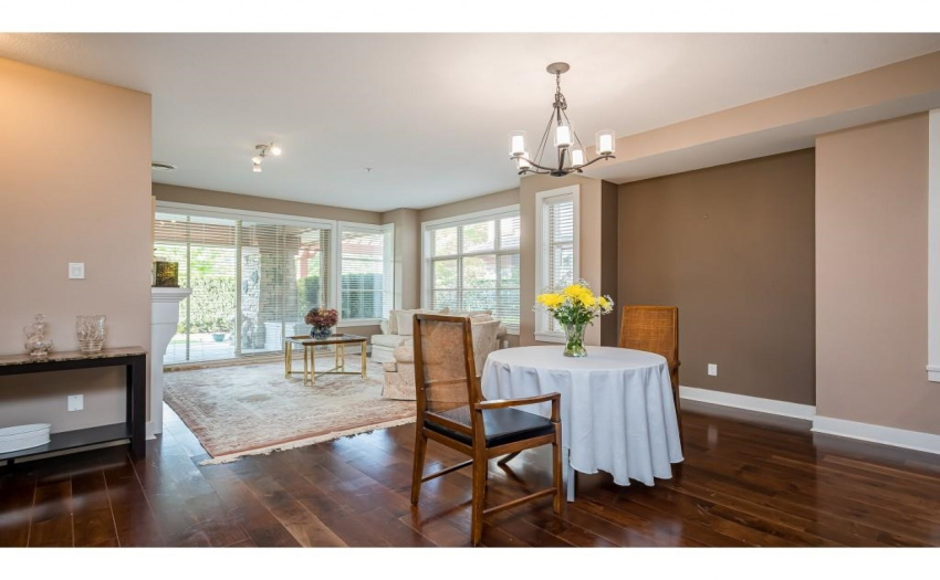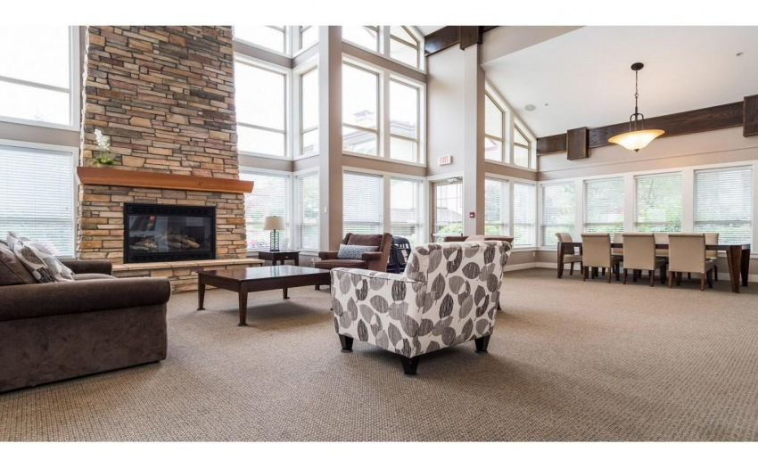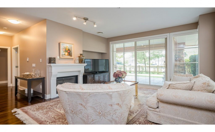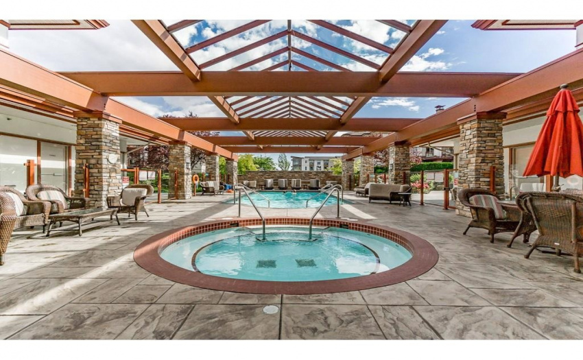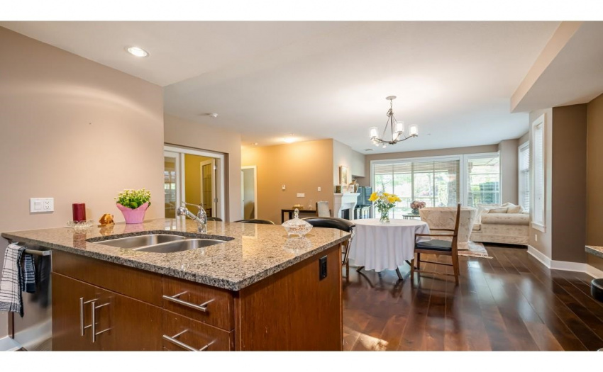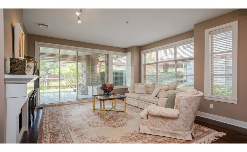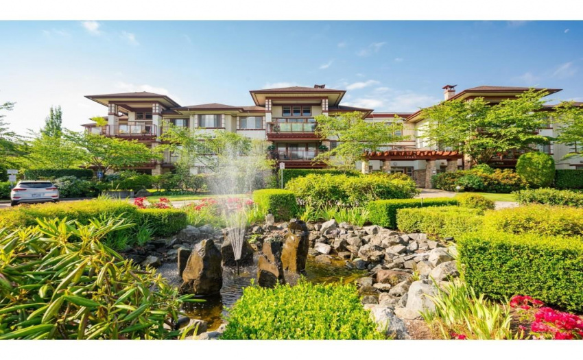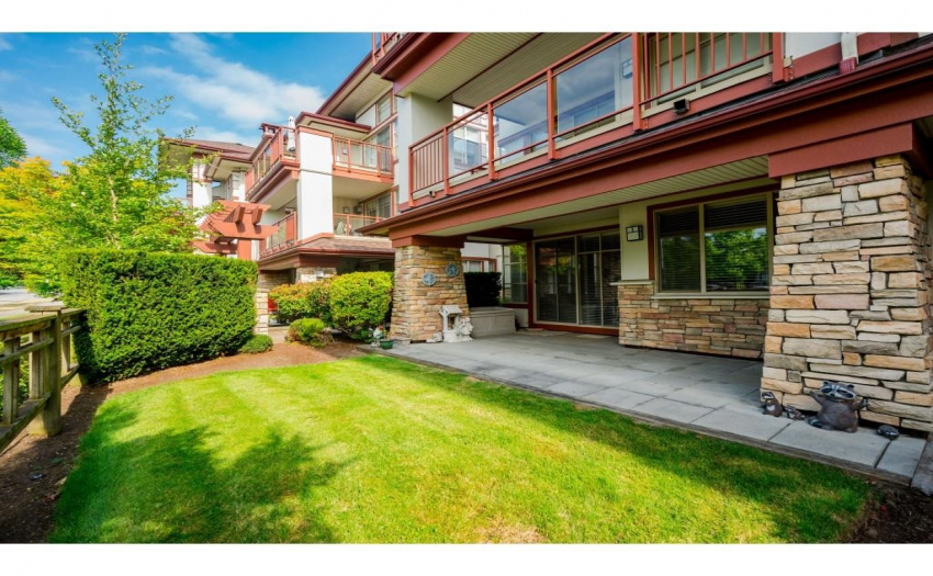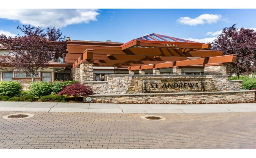 ST ANDREWS, open plan, ideal for couple, with dog. Immaculate corner unit, 2 bed, 2 bath. M/B will accommodate king bed, huge closet space. Light and bright, sliding doors open to large patio and grass yard. Side windows. Gourmet Kitchen, lots of cabinets, S/S high end appliances, dual fuel gas range, pot drawers, built-in microwave, granite counters. Bdrm flooring upgraded to expensive hardwood, great closet space. Unit recently painted. Radiant floor heating, gas fireplace. Covered deck with hook-up for gas barbeque. BONUS, large storage locker on same floor. Two side by side parking.(#81 & 57). Visitor parking in front of bldg. Resort feeling in this complex, with fireside lounge, outdoor pool, hot tub spa, two guest suites. Many more amenities, too numerous to mention. A MUST SEE!