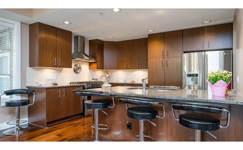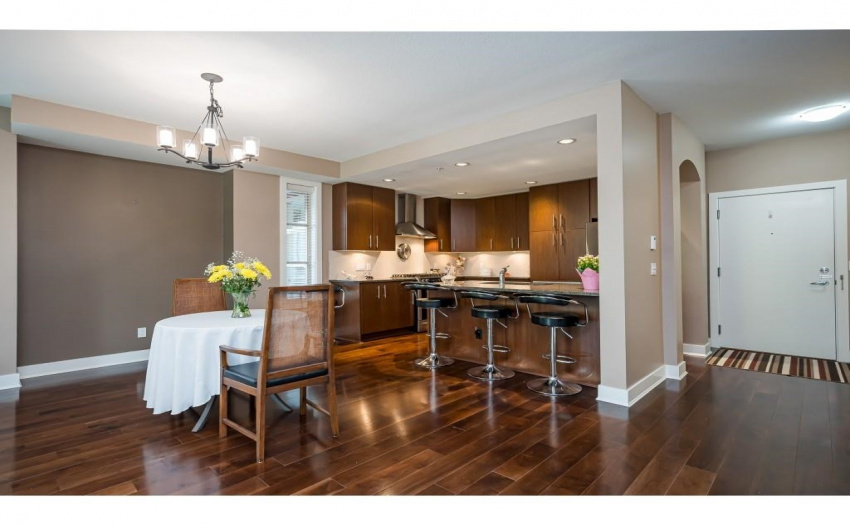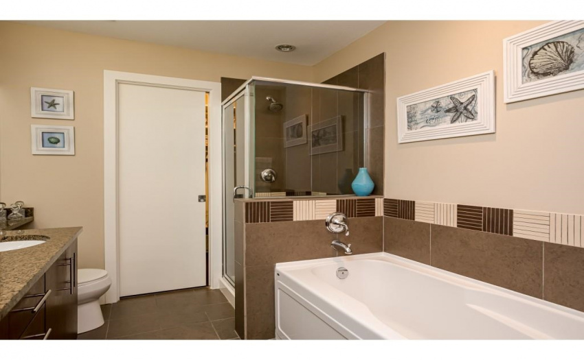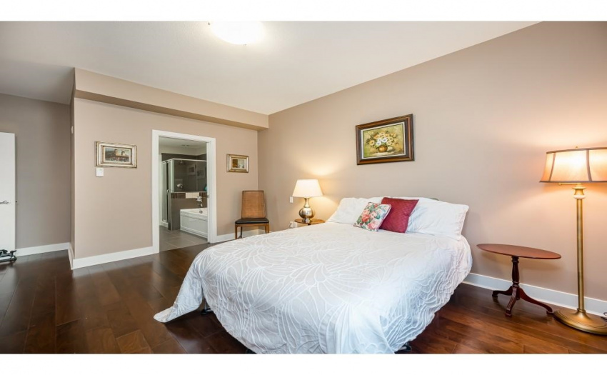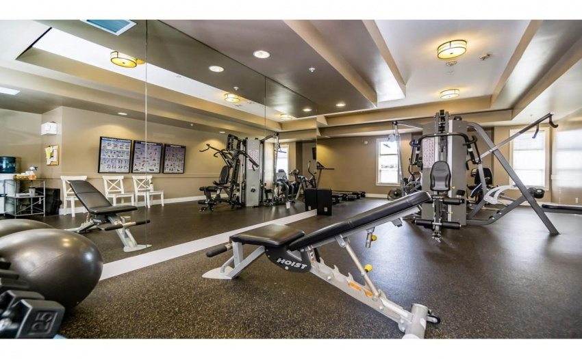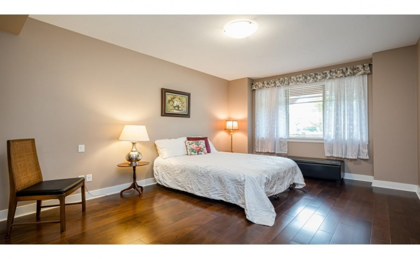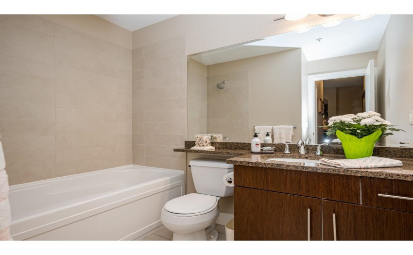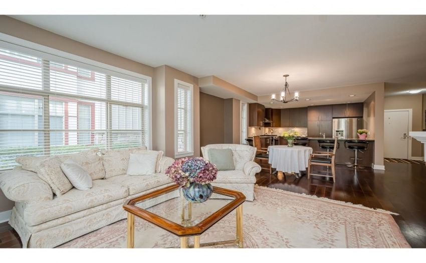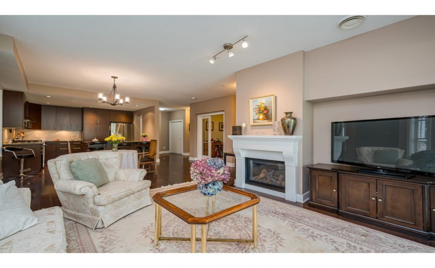 ST ANDREWS, open plan, ideal for couple, with dog. Immaculate corner unit, 2 bed, 2 bath. M/B will accommodate king bed, huge closet space. Light and bright, sliding doors open to large patio and grass yard. Side windows. Gourmet Kitchen, lots of cabinets, S/S high end appliances, dual fuel gas range, pot drawers, built-in microwave, granite counters. Bdrm flooring upgraded to expensive hardwood, great closet space. Unit recently painted. Radiant floor heating, gas fireplace. Covered deck with hook-up for gas barbeque. BONUS, large storage locker on same floor. Two side by side parking.(#81 & 57). Visitor parking in front of bldg. Resort feeling in this complex, with fireside lounge, outdoor pool, hot tub spa, two guest suites. Many more amenities, too numerous to mention. A MUST SEE!