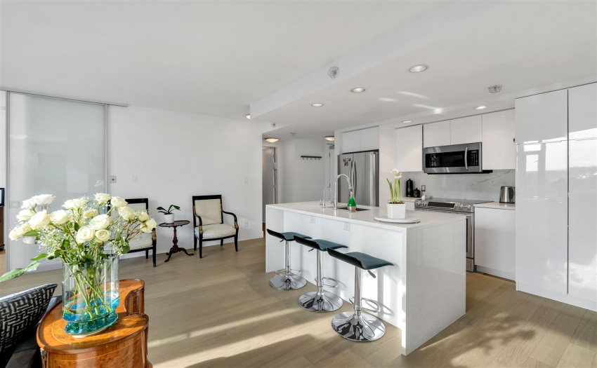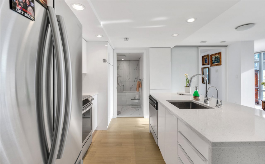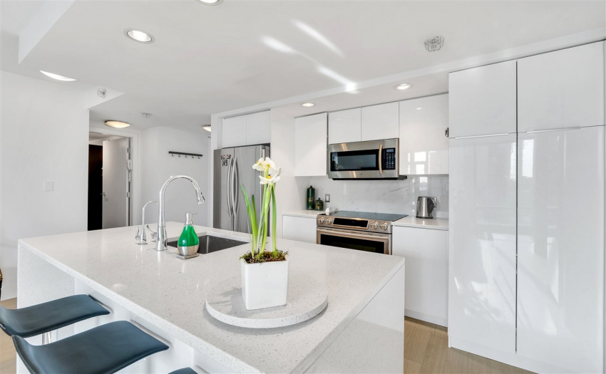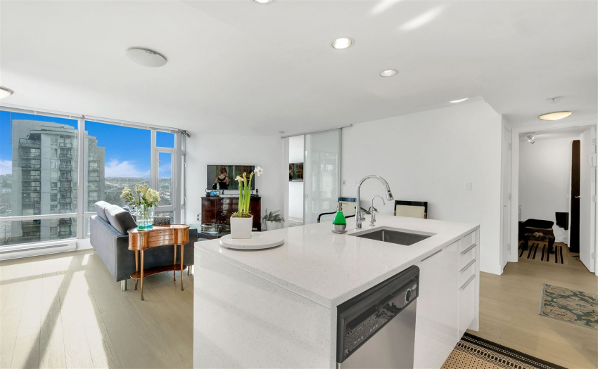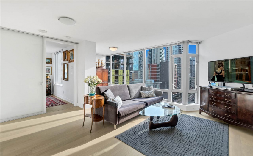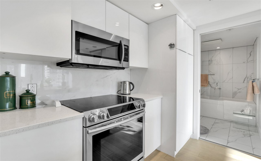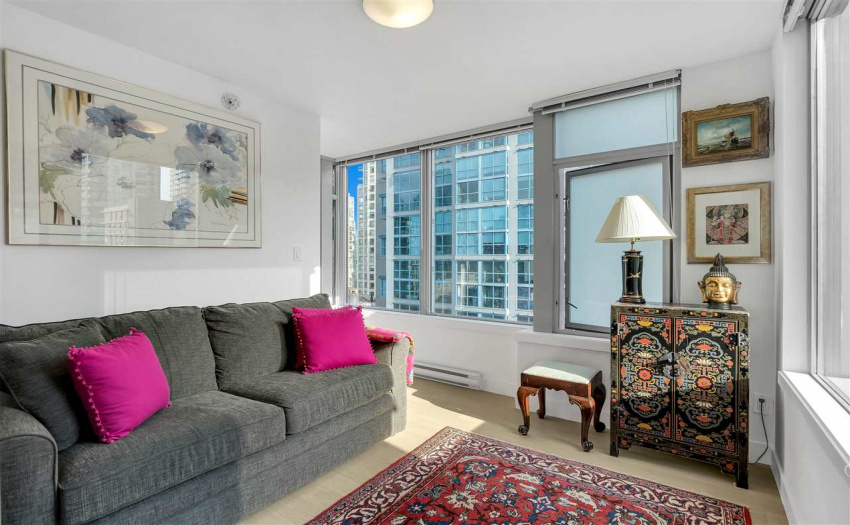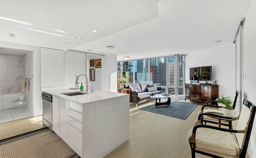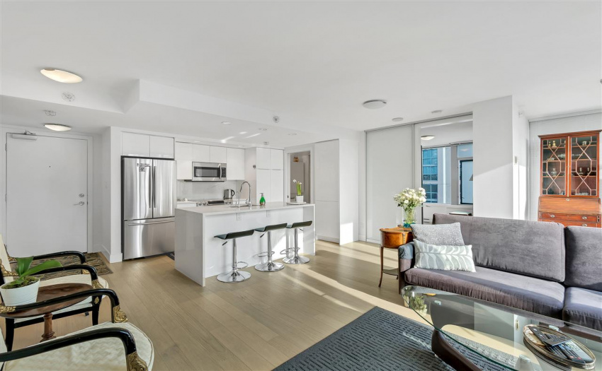 Modern Yaletown living at it’s finest! This exceptional 2 bedroom and den and boasts over 900 SF in a functional open floor plan in the sought after “Elan” development by the award winning Cressey Development. Enjoy a captivating city view with floor to ceiling windows. This SE facing corner maximizes square footage with an open concept living area that has been significantly updated with a sleek and modern kitchen, updated bathrooms, as well as new hardwood flooring throughout. New appliances include fridge, stove/oven & washer/dryer. This unit has TWO PARKING! The amenities are complete with sauna, steam room, gym and yoga studio. The Elan is centrally located in the heart of Yaletown, just steps to the seawall and close to all the best shopping and restaurants Vancouver has to offer.