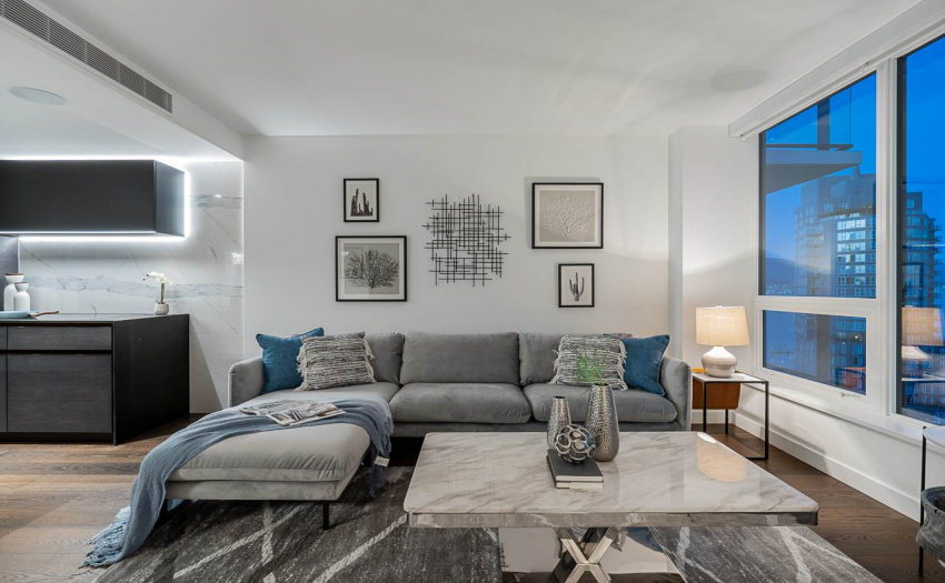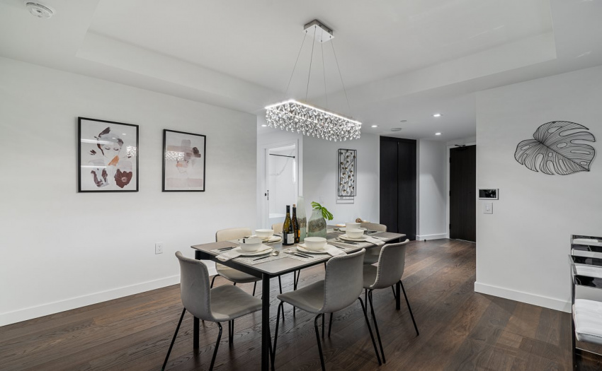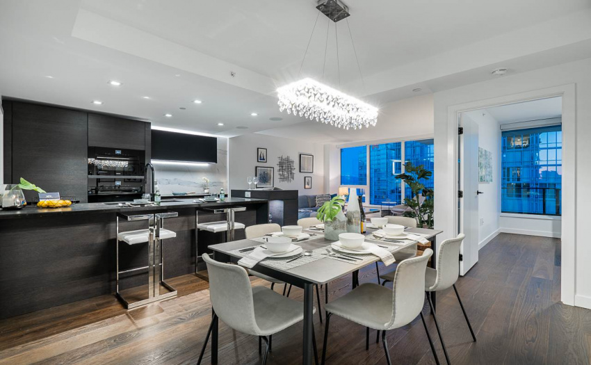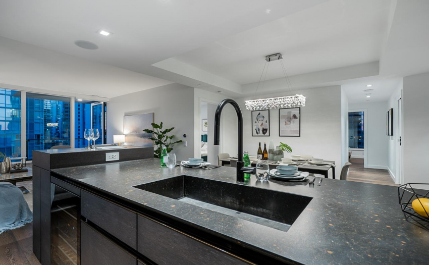 Beautiful 3 BED + 2 BATH luxury residence in Coal Harbour’s newest tower by renowned developer BOSA. Designed by Henriquez Partners Architects, Cardero’s finishing has a sleek aesthetic including wide-plank oak hardwood, honed limestone tile flooring, quartz countertops w/ fully integrated sinks. Backdrop for the kitchen & bathroom is a stunning book matched porcelain Calacatta tile. Kitchen includes premium Miele appliances. Control 4 home automation system with central control for lighting, music & temperature control. Over 1450 sq ft of living space offering spectacular views of the ocean & North Shore mountains. Building offers a fully equipped indoor fitness room, lounge w/ kitchen & fire-side seating. 6th floor rooftop deck has a BBQ/kitchen area. 24hr concierge.