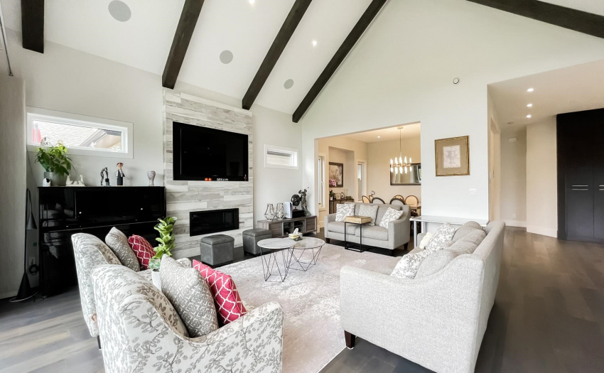 Meticulously built luxurious 4 bedroom, den and 4 bath family home built with spectacular custom Great Room floor plan, 18′ ceilings with cedar beams, huge windows and doors to allow natural light to brighten every corner. Features of the house; double-glazed doors and windows imported from Germany for sound insulation and warmth, German MHZ invisible blackout curtains, patio electric heating devices, can expand the stairs to three floors, expand the kitchen, and the whole house automation network mobile phone control audio TV Lighted garage door monitoring. 360-degree monitoring with 4 cameras without dead ends, indoor constant temperature and fresh air system. Electric heating can be added to the garage, Tesla electric car charging system pre installed. Open House this Weekend 2 to 4pm