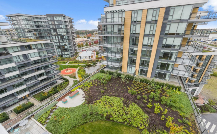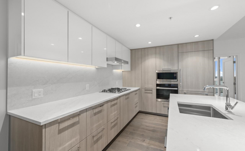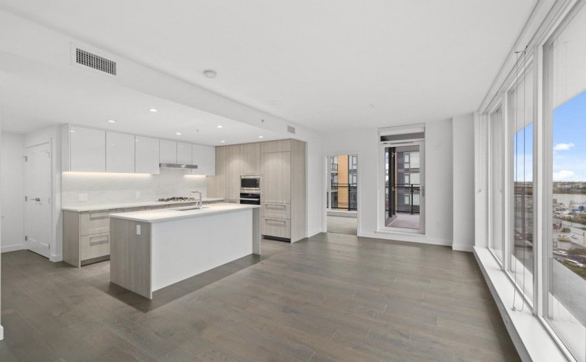 “ViewStar”-Very modern central living residences in Richmond. This rare corner unit w/ Panoramic city mountain view. Practical layout featuring 3 bdrms/2 bath with S/S appliances, contemporary kitchen, quartz countertops, A/C & top quality finishing. Separated bdrms maximize privacy. High ceiling windows bring tons of natural light. Upgraded laminate flooring thru-out the unit. Enjoy BBQ in the summer with a spacious private deck & mountain view. A brand new 35,000 soft City Community centre, rooftop gardens, indoor pool and 130,000 of additional exclusive amenities. Very central & convenient location. Steps to shoppings, the new “Capstan” skytrain station, public transit, restaurants. 2 parking stalls. Everything Richmond has to offer at your doorstep!