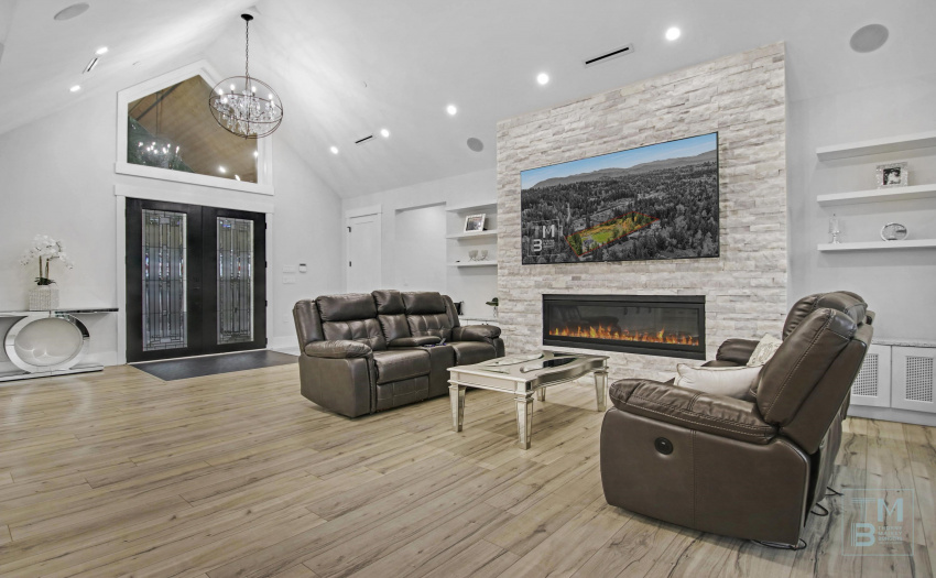 5 acre SUB-DIVIDABLE Lot w/ newly Custom Built w/ all the Bells & Whistles from the home structure including drilled Well & Septic. Designed for all ages and a variety of lifestyles. Country french chic finishes throughout, wheelchair friendly but more importantly is what you can’t see: sound proofing between floors & insulated walls allowing children to play & others relax. Under Stair lighting, Vaulted ceilings, stone fireplace floor to ceiling, heated floors throughout, granite counters, s/s appliances, hot water on demand, sprawling outdoor deck w/ BBQ hookup, outdoor heating to enjoy quiet evenings overlooking 5acres while both lower patio & main deck fully covered. Home hosts authorized secondary living w/ a nice floor plan, 2 bathrms one as ensuite. Home hosts 8 bedrms, 9 bathrms