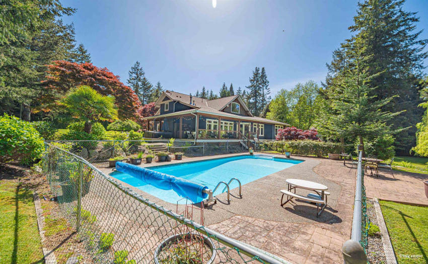 Magnificent rarely found country home sits on a acer lot, privately gated property in the heart of Elgin Chantrell. Custom built West Coast luxury style by well respected local builder. Master bedroom on main, solid construction with beautiful fir woodwork and doors, high standard finished basement has 2 fabulous bedrooms suites, 9ft ceilings living area leads out to view of a calming stonework pond. ANIMAL LOVERS ALERT!! A massive high strength built iron cage in back yard with sunroof and huge dog house inside, surrounding trees yet far enough away from neighbours, and still let this lot to be sunny, absolutely makes your pets living healthier and happier! Also features well maintained outdoor pool, impressive landscape settings. This is it, look no further!