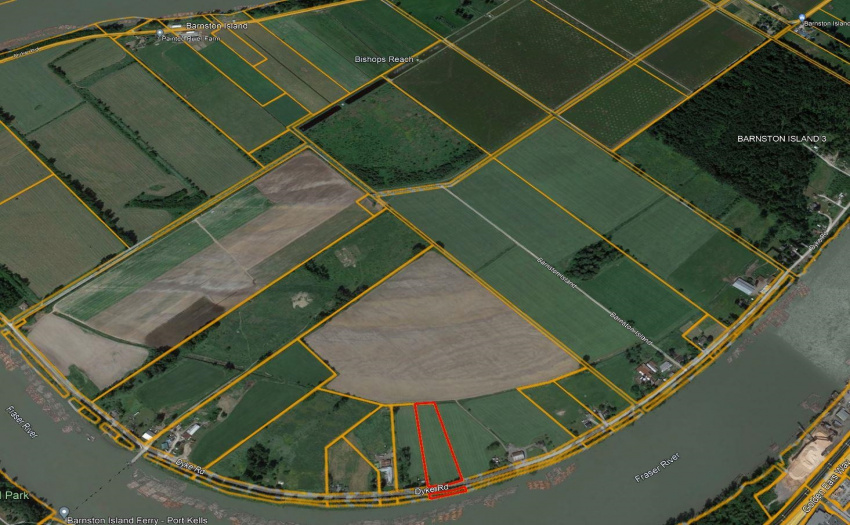 4.58 acres highly productive Certified Organic Farmland with 296 ft of frontage on the Fraser River on the south side of Barnston Island. Leased to a dairy farm, getting 4 cuts of hay for sileage, it is considered to be the best agricultural land on the island. Owned by the same family since 1939 they will continue to own the larger property next door. Spectacular views of the Golden Ears Mountains and the Fraser River it is accessed by a 5 minute, free, on demand, ferry. A hidden gem where you can live a quiet rural lifestyle minutes from the city with great access to HWY 1 & 17. A protective dike rings the island which is completely in the ALR. There is GST payable on this sale and all offer will be subject to a Right of First Refusal.
