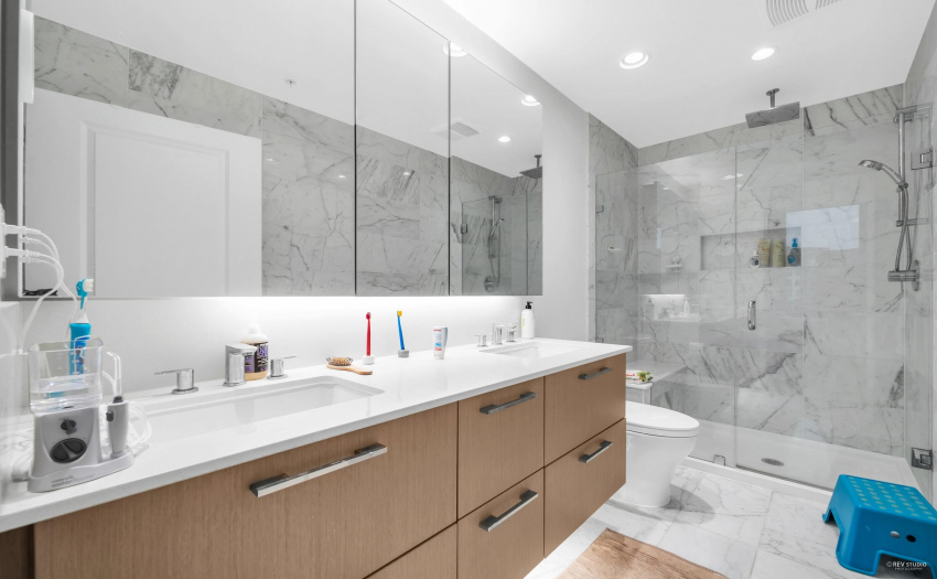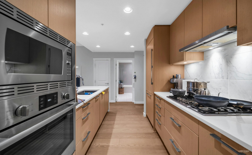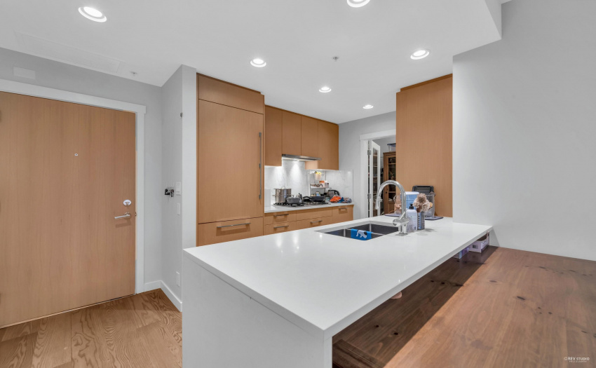 The Residences at Nobel Park by Polygon in UBC area. It offers convenient everyday living and environment of academic excellence. Just minutes of walking to Wesbrook Village, a well known picturesque and walkable community with tree-lined streets and an abundance of shops and services. Famous sought-after elementary and secondary schools are nearby. This sub-penthouse level 2 Bed 2 Bath + Flex home features a bright open-plan layout that comes with a designer kitchen, premium Bosch appliances, gas cooktop, A/C, warp around L shaped large deck. This South West facing corner unit offers full privacy in master bedroom, living room, and kitchen with open view of UBC farms. Building amenities includes in-building fitness studio, social lounge, car wash area, and a resident manager.