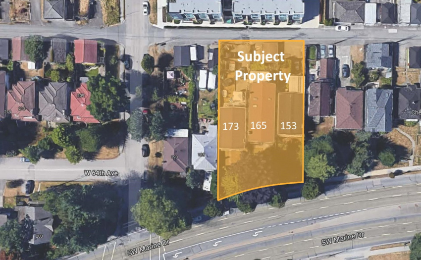 Developers & Investors Alert! 2.5FSR Cambie-Marpole Plan, Up to 6 Storeys apartment project site. 3 lots (153-173 SW Marine Dr. ) Total lot size 15107 SF. Potential to assemble 3 extra lots, roughly 12050SF to the east side neighbors. Great location walk to Marine Gateway shopping center and skytrain station. Top schools catchment, minutes to Oakridge Mall, downtown, Airport & Richmond!