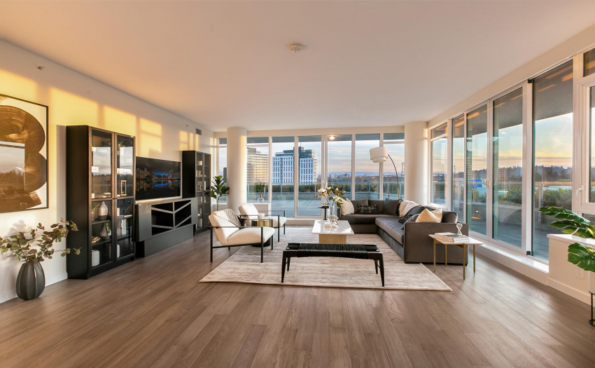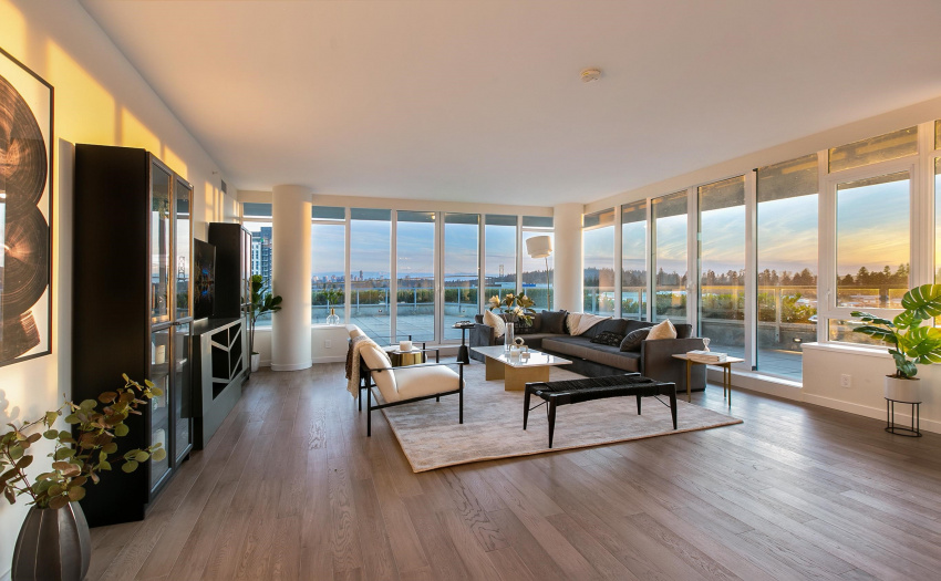 Presenting the Sub-Penthouse at Evelyn’s Forest Edge 4, by the award winning Onni Group. West Vancouver’s ultimate in luxury and discerning living. This South facing two bedroom & den dream home is open-plan with 1,945 sqft of interior living space & over 1,400sqft of balconies. Gorgeous wide plank oak hardwood flooring flows throughout the suite, and the kitchen features a Sub-Zero fridge/freezer and Miele cooking facilities. The master bedroom offers a luxurious en-suite with marble counter tops and a walk-in closet. Additional interior features include air conditioning a full size washer/dryer, Savant Home Tech system, automated lighting and sound control with built-in speakers, secure parking and more. Call today for a private tour of this magnificent home.