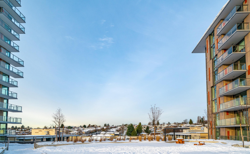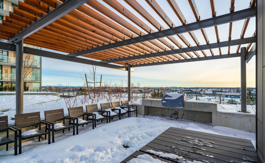 Welcome to FRASER COMMONS – This bright and spacious one bedroom has expansive East facing no blocking views of the city and Mount Baker. This new and walkable community is central to the Marine Gateway skytrain, parks, groceries, retail, as well as 10 mins from the airport and 20 mins to Downtown Vancouver. This home is a quality build with attention to detail that you can see – custom built-in refrigerator, gas cooktop, porcelain tiling, contemporary finishes, a large balcony space – This home also comes with 2-5-10 year warranty for peace of mind. Building amenities include a concierge, rooftop terrace, fitness facility, party room with a kitchen for entertaining as well as a study and conference room.